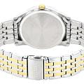 Часы Citizen BI5006-81P сочетают в себе японское качество, современный дизайн и надежность кварцевого механизма Citizen G111. Круглый корпус диаметром 39 мм выполнен из прочной нержавеющей стали, что обеспечивает долговечность и стильный внешний вид. Белый циферблат украшен метками в виде штрихов, а также дополнен окошком календаря с отображением даты и дня недели в позиции «3 часа». Стрелки с люминесцентным покрытиемЛюминесцентное покрытиеПозволяет считывать показания времени в темноте. Производители наносят на стрелки, часовые индексы, безель или поверхность циферблата светонакопительный состав, дающий холодное свечение., что обеспечивает отличную видимость в темноте. Минеральное стеклоМинеральное стеклоМинеральное стекло представляет собой искусственно выращенный минерал кварца. Такое стекло отличается особой устойчивостью к повреждениям и царапинам. Уступает по некоторым качествам сапфировому стеклу. защищает циферблат от царапин и повреждений. Рифленая заводная головка подчеркивает элегантность и практичность модели. Стальной браслет с частичным золотистым IP-покрытиемIP-покрытиеМетод ионного напыления. Демонстрирует повышенную устойчивость к истиранию, окислению и химическим веществам. Под воздействием высокого давления и температуры около 1500°C молекулы металла надёжно соединяются с частицами корпуса часов. оснащен надежной раскладной застёжкойРаскладная застёжкаТакой тип застёжки используется только на браслетах из металла. Она никогда не раскрывается полностью, происходит разделение на 2 и более частей. Раскладывающая застёжка снизит вероятность потери часов к минимуму., что обеспечивает комфортное ношение и подходит для любого случая. Водозащита до 50 метров позволяет не бояться случайных брызг и дождя.