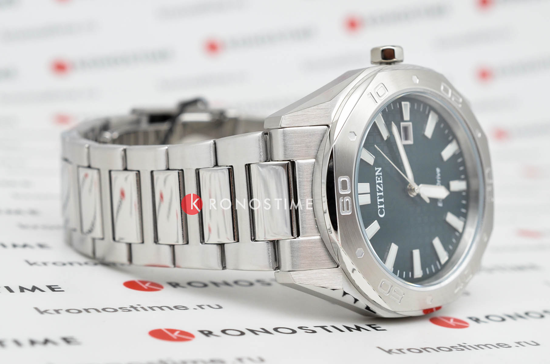 Часы Citizen BM7630-80X сочетают в себе современный стиль и высокую функциональность. Японский кварцевый механизм калибра Citizen E111 обеспечивает точную работу и надежность, а инновационная система Eco-Drive позволяет забыть о замене батареек — питание осуществляется за счет солнечной энергии, с запасом хода до 180 дней. Корпус и браслет выполнены из прочной нержавеющей стали, что гарантирует долговечность и устойчивость к износу. На безелеБезельВнешний ободок, закрепляющий стекло. В спортивных часах так называется поворотное кольцо с делениями на циферблате, выполняет роль таймера – замеряет отрезки времени на шкале. Неподвижный безель – элемент декора. Однонаправленно вращающийся безель на дайверских часах позволяет фиксировать моменты погружения и выныривания на поверхность. выгравирована секундная и минутная шкала. Элегантный темно-зеленый циферблат со стрелками и метками с люминесцентным покрытиемЛюминесцентное покрытиеПозволяет считывать показания времени в темноте. Производители наносят на стрелки, часовые индексы, безель или поверхность циферблата светонакопительный состав, дающий холодное свечение. защищен устойчивым к царапинам минеральным стекломМинеральное стеклоМинеральное стекло представляет собой искусственно выращенный минерал кварца. Такое стекло отличается особой устойчивостью к повреждениям и царапинам. Уступает по некоторым качествам сапфировому стеклу.. Водозащита до 100 метров позволяет использовать часы при плавании и в повседневных ситуациях. Окно даты расположено на отметке «3 часа», а браслет оснащен удобной раскладной застёжкойРаскладная застёжкаТакой тип застёжки используется только на браслетах из металла. Она никогда не раскрывается полностью, происходит разделение на 2 и более частей. Раскладывающая застёжка снизит вероятность потери часов к минимуму.. Диаметр корпуса составляет 41 мм, толщина — 9,7 мм, ширина браслета — 22 мм, вес — 136 г. Эти часы станут отличным выбором для тех, кто ценит надежность, практичность и стильный внешний вид.