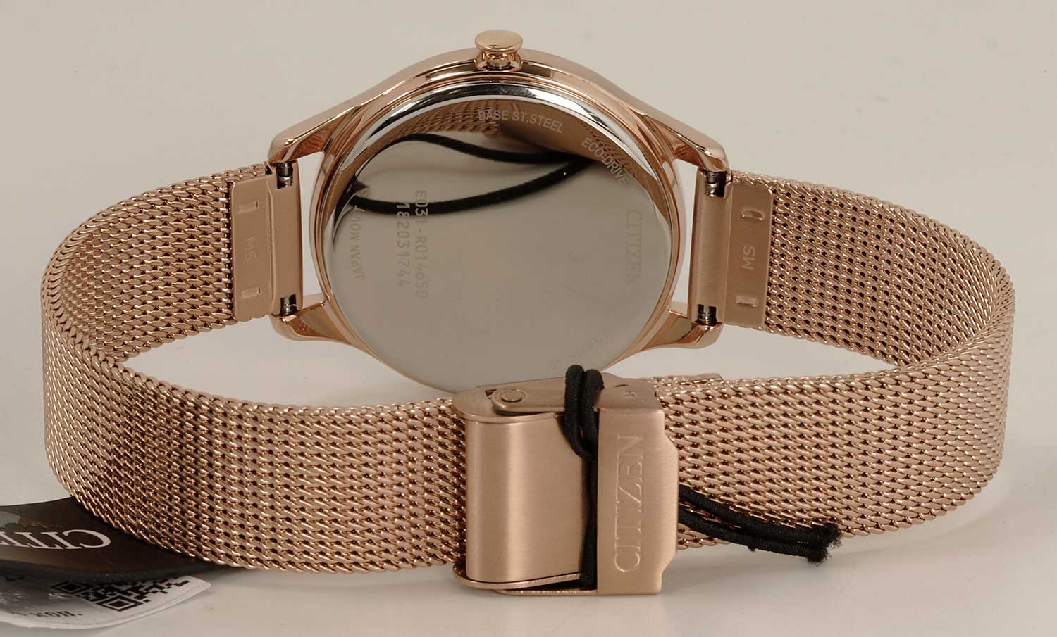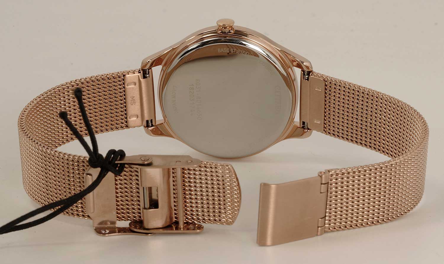 Часы Citizen Eco-Drive EM0508-80Y созданы для тех, кто ценит элегантность и современные технологии в одном аксессуаре. Корпус выполнен из прочной нержавеющей стали с IP-покрытиемIP-покрытиеМетод ионного напыления. Демонстрирует повышенную устойчивость к истиранию, окислению и химическим веществам. Под воздействием высокого давления и температуры около 1500°C молекулы металла надёжно соединяются с частицами корпуса часов. цвета розового золота, гармонично сочетается с изысканным стальным золотистым браслетом миланского плетения с раскладным замкомРаскладной замокДанный вариант застежки используется только на часах с металлическим браслетом. Отличительная особенность такого крепления в том, что длина браслета становится универсальной и вы можете самостоятельно отрегулировать нужный вам размер – застежка просто двигается по браслету часов., обеспечивающим комфортную посадку на запястье. Особое внимание привлекает разноцветный циферблат, который придает часам особый шарм и изысканность. Метки выполнены в виде аккуратных штрихов, что обеспечивает лёгкое считывание времени. Часы оснащены надёжным кварцевым механизмом Citizen E031 с инновационной системой Eco-Drive, которая позволяет заряжать устройство от любого источника света и не требует замены батарейки, а функция индикации заряда EOLEOLПредставляет собой систему, уведомляющую владельца часов о необходимости замены элемента питания. За 2 недели до полного разряда батарейки секундная стрелка перестаёт ходить чётко и начинает перепрыгивать на 3-4 деления. своевременно напомнит о необходимости подзарядки. Прочное минеральное стеклоМинеральное стеклоМинеральное стекло представляет собой искусственно выращенный минерал кварца. Такое стекло отличается особой устойчивостью к повреждениям и царапинам. Уступает по некоторым качествам сапфировому стеклу. защищает циферблат от царапин и повреждений, а водозащита до 50 метров позволяет не беспокоиться о случайных брызгах воды. Диаметр корпуса составляет 32 мм, толщина корпуса 7,3 мм делают эту модель удобной для повседневного ношения и подчёркивают стильный образ.