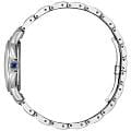 Часы Citizen EM1160-58E — это стильная модель, созданная для современных женщин, которые ценят элегантность и надёжность. Корпус диаметром 31,5 мм и толщиной 8,7 мм выполнен из прочной нержавеющей стали, что обеспечивает долговечность и изысканный внешний вид. Серебристый браслет из нержавеющей стали удобно фиксируется на запястье благодаря застежке «бабочка»Застёжка "бабочка"Такой вид застёжки дополняется предохранителями, помогающими избежать случайного раскрытия браслета. Обладают изящным исполнением. . Черный циферблат украшен римскими цифрами и аккуратными штрихами, а центральные часовая, минутная и секундная стрелки обеспечивают точное отображение времени. Защиту от случайных царапин гарантирует сапфировое стеклоСапфировое стеклоПрочный и надёжный материал из кристалла сапфира синтетического происхождения, характеризующийся особой твёрдостью и устойчивостью к царапинам и повреждениям., обладающее высокой прочностью. Благодаря инновационному механизму Eco-Drive Caliber E031 часы работают на солнечной энергии и не требуют замены батарейки. Водонепроницаемость уровня WR 50 позволяет не беспокоиться о контакте с водой во время мытья рук или под дождём. Японское качество исполнения и дизайн делают эти часы отличным выбором для повседневного ношения и особых случаев.