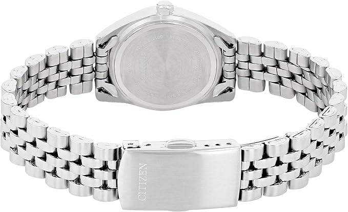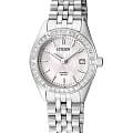 Часы Citizen EU6060-55D представляют собой элегантную модель, выполненную в Японии, сочетающую в себе современные технологии и утончённый дизайн. Корпус и браслет изготовлены из прочной нержавеющей стали, что обеспечивает долговечность и привлекательный внешний вид. Диаметр корпуса составляет 26 мм, что делает часы изящными и аккуратными на запястье. Особое внимание привлекает безельБезельВнешний ободок, закрепляющий стекло. В спортивных часах так называется поворотное кольцо с делениями на циферблате, выполняет роль таймера – замеряет отрезки времени на шкале. Неподвижный безель – элемент декора. Однонаправленно вращающийся безель на дайверских часах позволяет фиксировать моменты погружения и выныривания на поверхность., украшенный мерцающими кристаллами, которые придают часам особый шарм и изысканность. Стрелки с люминесцентным покрытиемЛюминесцентное покрытиеПозволяет считывать показания времени в темноте. Производители наносят на стрелки, часовые индексы, безель или поверхность циферблата светонакопительный состав, дающий холодное свечение.. Надёжный кварцевый механизм гарантирует точность хода, а водозащита уровня WR 50 позволяет не снимать часы при мытье рук или во время дождя. Циферблат украшен часовыми индексами в виде штрихов, а также оснащён окошком даты в позиции 3 часа, центральными стрелками часов, минут и секунд для удобного считывания времени и кристаллами. Минеральное стеклоМинеральное стеклоМинеральное стекло представляет собой искусственно выращенный минерал кварца. Такое стекло отличается особой устойчивостью к повреждениям и царапинам. Уступает по некоторым качествам сапфировому стеклу. устойчиво к появлению мелких царапин, сохраняя прозрачность и презентабельный вид. Стальной браслет с раскладной застёжкойРаскладная застёжкаТакой тип застёжки используется только на браслетах из металла. Она никогда не раскрывается полностью, происходит разделение на 2 и более частей. Раскладывающая застёжка снизит вероятность потери часов к минимуму. надежно фиксирует часы на запястье, обеспечивая комфорт при ежедневном ношении.
