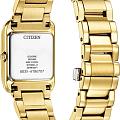 Элегантные часы Citizen EW5602-81D произведены в Японии и оснащены надежным кварцевым механизмом с калибром Citizen B035, работающим на инновационной системе Eco-Drive — часы заряжаются от солнечного света и не требуют замены батарейки, обеспечивая запас хода до 210 дней. Корпус выполнен из нержавеющей стали с изящным золотистым IP-покрытиемIP-покрытиеМетод ионного напыления. Демонстрирует повышенную устойчивость к истиранию, окислению и химическим веществам. Под воздействием высокого давления и температуры около 1500°C молекулы металла надёжно соединяются с частицами корпуса часов., а перламутровый циферблат защищает выпуклое сапфировое стеклоСапфировое стеклоПрочный и надёжный материал из кристалла сапфира синтетического происхождения, характеризующийся особой твёрдостью и устойчивостью к царапинам и повреждениям., устойчивое к царапинам. Метки представлены в виде штрихов и арабских цифр, что делает показания времени особенно удобочитаемыми. Стальной браслет с изящным золотистым IP-покрытиемIP-покрытиеМетод ионного напыления. Демонстрирует повышенную устойчивость к истиранию, окислению и химическим веществам. Под воздействием высокого давления и температуры около 1500°C молекулы металла надёжно соединяются с частицами корпуса часов. и надежной застежкой «бабочка»Застёжка "бабочка"Такой вид застёжки дополняется предохранителями, помогающими избежать случайного раскрытия браслета. Обладают изящным исполнением. обеспечивает комфорт при носке. Габариты корпуса составляют 21,5 на 28,4 мм, толщина — 7,5 мм, а вес — 68 граммов. Водозащита уровня 50WR позволяет не беспокоиться о случайных брызгах, мытье рук или дожде. Эта модель станет изысканным дополнением вашего образа и подчеркнет ваш утонченный вкус.