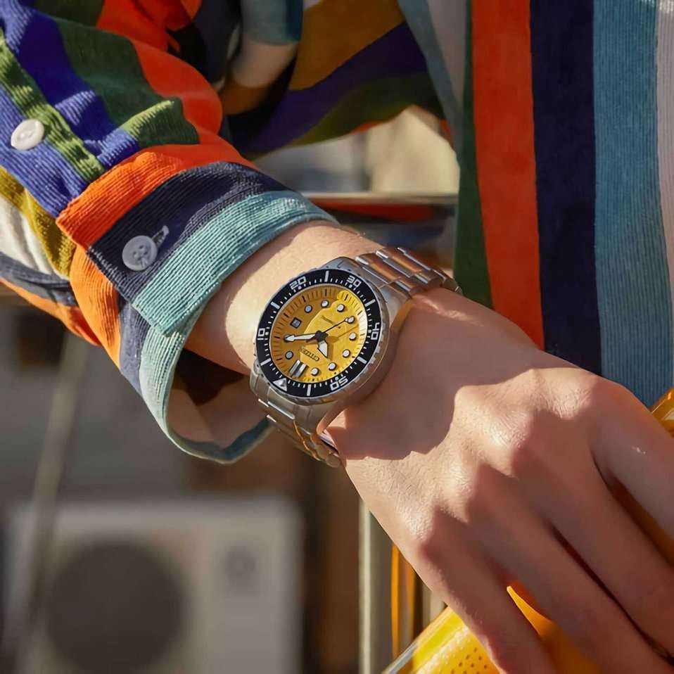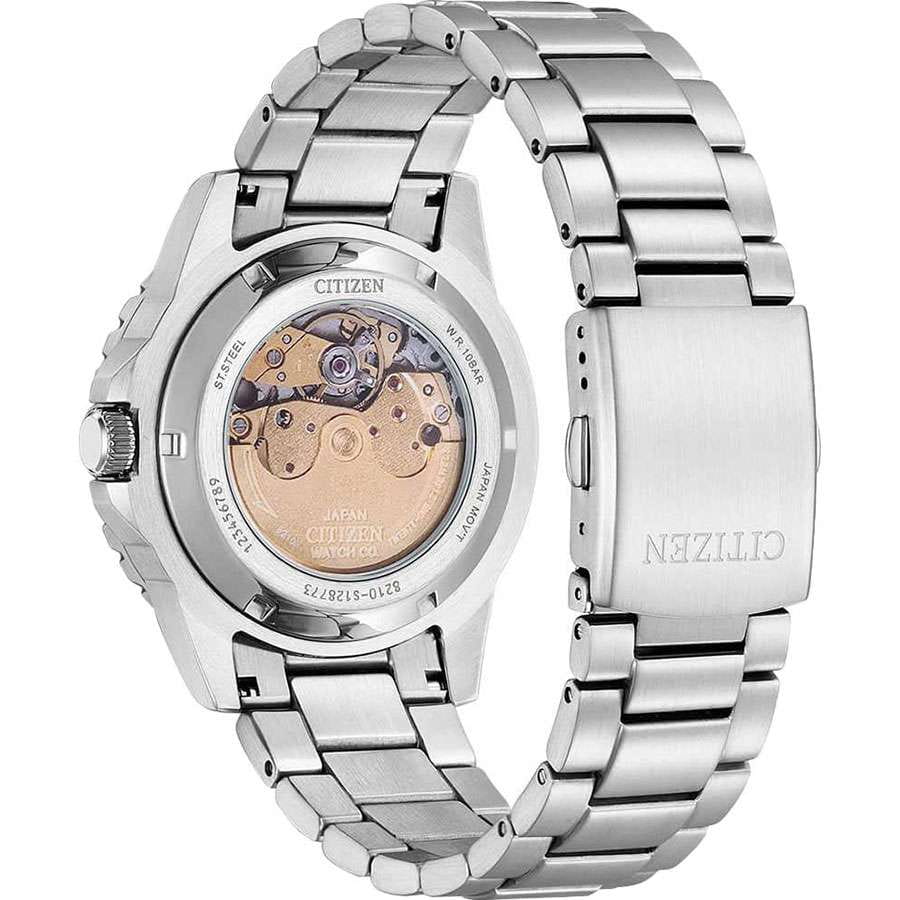 Мужские наручные часы Citizen Automatic NJ0170-83Z - сочетание спортивного стиля и повседневной функциональности. Корпус из нержавеющей стали диаметром 43 мм идеально сбалансирован. Минеральное стеклоМинеральное стеклоМинеральное стекло представляет собой искусственно выращенный минерал кварца. Такое стекло отличается особой устойчивостью к повреждениям и царапинам. Уступает по некоторым качествам сапфировому стеклу. обеспечивает отличную защиту циферблата от царапин. Механические часы с автоподзаводом. Стальной браслет на раскладной застёжкеРаскладная застёжкаТакой тип застёжки используется только на браслетах из металла. Она никогда не раскрывается полностью, происходит разделение на 2 и более частей. Раскладывающая застёжка снизит вероятность потери часов к минимуму. идеально дополняют дизайн часов, обеспечивая комфортное ношение. Окошко даты в положении 3 часа. Однонаправленный вращающийся безельБезельВнешний ободок, закрепляющий стекло. В спортивных часах так называется поворотное кольцо с делениями на циферблате, выполняет роль таймера – замеряет отрезки времени на шкале. Неподвижный безель – элемент декора. Однонаправленно вращающийся безель на дайверских часах позволяет фиксировать моменты погружения и выныривания на поверхность. с IP-покрытиемIP-покрытиеМетод ионного напыления. Демонстрирует повышенную устойчивость к истиранию, окислению и химическим веществам. Под воздействием высокого давления и температуры около 1500°C молекулы металла надёжно соединяются с частицами корпуса часов.. Стрелки и метки с люминесцентным покрытиемЛюминесцентное покрытиеПозволяет считывать показания времени в темноте. Производители наносят на стрелки, часовые индексы, безель или поверхность циферблата светонакопительный состав, дающий холодное свечение.. Завинчивающаяся прозрачная задняя крышка. Циферблат с часовыми индексами в виде штрихов и точек. Часы обладают водонепроницаемостью до 100WR, что делает их идеальными для повседневной носки.