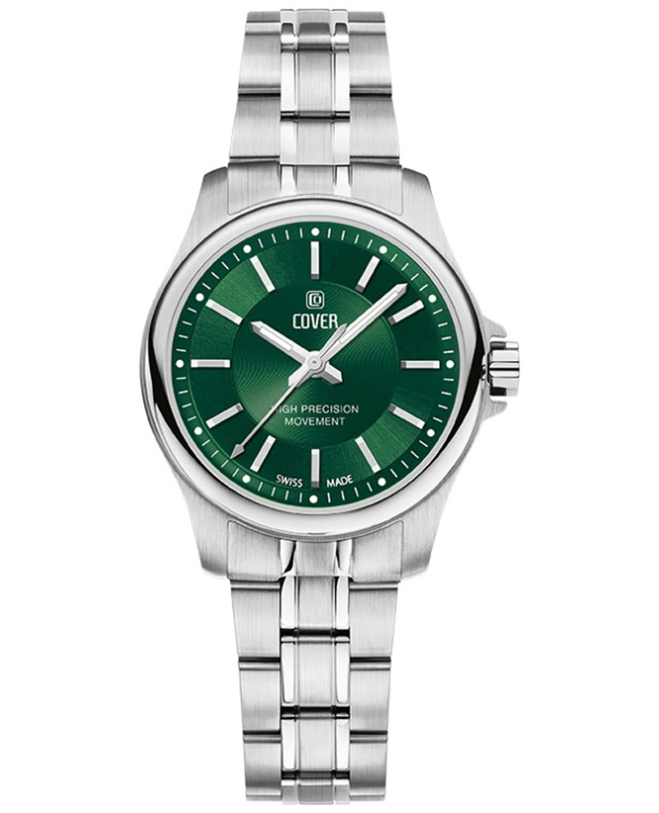 Женские наручные часы Cover CO201.31 из коллекции Marville сочетают в себе классический дизайн и высокую точность швейцарского производства. Модель обладает круглым корпусом диаметром 28 мм, изготовленным из нержавеющей стали, что придает изделию благородный внешний вид. Зеленый циферблат оснащен стрелками с люминесцентным покрытиемЛюминесцентное покрытиеПозволяет считывать показания времени в темноте. Производители наносят на стрелки, часовые индексы, безель или поверхность циферблата светонакопительный состав, дающий холодное свечение.. Для защиты используется сапфировое стеклоСапфировое стеклоПрочный и надёжный материал из кристалла сапфира синтетического происхождения, характеризующийся особой твёрдостью и устойчивостью к царапинам и повреждениям. с антибликовым покрытиемАнтибликовое покрытиеСлой оксида металла в 0,13-0,3 микрон, благодаря которому стекло часов не бликует и не отражает свет. Антибликовое покрытие уменьшает отражение света в 10 раз, обеспечивая отличную читаемость показателей циферблата., обеспечивающее прочную защиту от царапин и превосходную читаемость времени даже при ярком свете. Часы работают на высокоточном кварцевом механизме ETA, гарантирующем исключительную точность хода с погрешностью около 20 секунд в месяц. Браслет выполнен из нержавеющей стали и оснащен раскладной застежкойРаскладная застёжкаТакой тип застёжки используется только на браслетах из металла. Она никогда не раскрывается полностью, происходит разделение на 2 и более частей. Раскладывающая застёжка снизит вероятность потери часов к минимуму., обеспечивающей комфортное ношение и безопасность. Водонепроницаемость достигает 10 атмосфер (100 метров), что позволяет использовать их во время плавания и других водных видов спорта, однако не рекомендуется для глубоководного дайвинга. Эти швейцарские часы станут идеальным дополнением как классического, так и современного образа.
