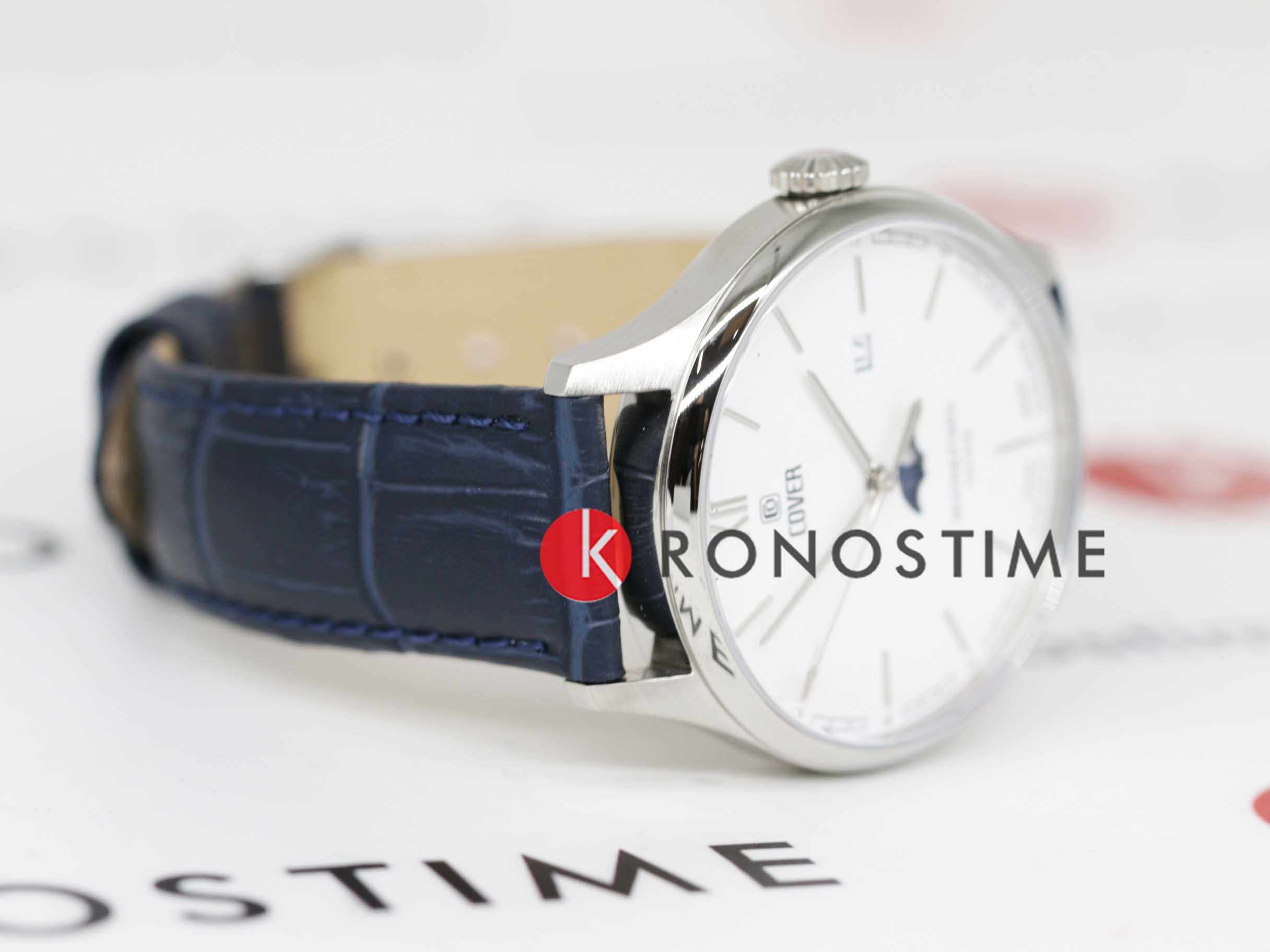 Мужские наручные часы Cover CO202.01 из коллекции Chapman Moon&Stars сочетают в себе классический дизайн и высокую точность швейцарского производства. Модель обладает круглым корпусом диаметром 41 мм, изготовленным из нержавеющей стали. Браслет выполнен из синей кожи, оснащён классической застёжкой для комфортного ношения. Белый циферблат украшен индексами-маркеры и оснащен индикатором фаз Луны, а также окном даты на «3 часах». Для защиты используется минеральное стеклоМинеральное стеклоМинеральное стекло представляет собой искусственно выращенный минерал кварца. Такое стекло отличается особой устойчивостью к повреждениям и царапинам. Уступает по некоторым качествам сапфировому стеклу. с антибликовым покрытиемАнтибликовое покрытиеСлой оксида металла в 0,13-0,3 микрон, благодаря которому стекло часов не бликует и не отражает свет. Антибликовое покрытие уменьшает отражение света в 10 раз, обеспечивая отличную читаемость показателей циферблата., обеспечивающее прочную защиту от царапин и превосходную читаемость времени. Часы работают на кварцевом механизме, гарантирующем исключительную точность хода с погрешностью около 20 секунд в месяц. Водонепроницаемость достигает 5 атмосфер (50 метров), что позволяет использовать их в повседневной жизни, однако не рекомендуется для плавания или дайвинга. Эти швейцарские часы станут идеальным дополнением как классического, так и современного образа мужчины, ценящего качество и стиль.
