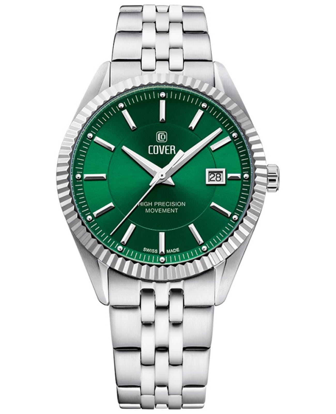 Наручные часы Cover CO208.08 из коллекции Alston — это воплощение мужской элегантности и швейцарского мастерства. Модель привлекает внимание своим безупречным дизайном и высокотехнологичным исполнением, что делает ее идеальным выбором для тех, кто ценит классику с современным акцентом. В основе работы часов лежит надежный кварцевый механизм ETA, известный своей исключительной точностью и долговечностью. Этот швейцарский калибр гарантирует стабильность хода и минимальную погрешность, а маркировка «Swiss Made» подтверждает соответствие высочайшим стандартам качества. Циферблат зеленого цвета с текстурированным узором и контрастными штрихами, защищен минеральным стекломМинеральное стеклоМинеральное стекло представляет собой искусственно выращенный минерал кварца. Такое стекло отличается особой устойчивостью к повреждениям и царапинам. Уступает по некоторым качествам сапфировому стеклу. с сапфировым напылением. Браслет из нержавеющей стали серебристого цвета, на раскладной застёжкеРаскладная застёжкаТакой тип застёжки используется только на браслетах из металла. Она никогда не раскрывается полностью, происходит разделение на 2 и более частей. Раскладывающая застёжка снизит вероятность потери часов к минимуму.. Часы Cover CO208.08 – это сочетание традиций швейцарского качества и современности.