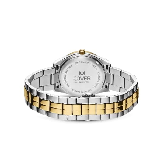 Представляем женские швейцарские часы Cover из коллекции Andara Diamond, модель CO210.04 — воплощение элегантности и роскоши. Эта уникальная модель украшена синтетическими бриллиантами, которые гармонично сочетаются с серебристым циферблатом, создавая ослепительную игру света на запястье. Стальной корпус диаметром 35 мм выполнен в пропорциональных размерах, что делает часы удобными для повседневного ношения. БезельБезельВнешний ободок, закрепляющий стекло. В спортивных часах так называется поворотное кольцо с делениями на циферблате, выполняет роль таймера – замеряет отрезки времени на шкале. Неподвижный безель – элемент декора. Однонаправленно вращающийся безель на дайверских часах позволяет фиксировать моменты погружения и выныривания на поверхность. с PVD-покрытиемPVDУльтратонкое покрытие наносится в технике вакуумного напыления, сочетает в себе нитрид титана особой прочности со слоем золота или оксида хрома. Несёт в себе декоративную или защитную функцию.. Циферблат защищен прочным сапфировым стекломСапфировое стеклоПрочный и надёжный материал из кристалла сапфира синтетического происхождения, характеризующийся особой твёрдостью и устойчивостью к царапинам и повреждениям., устойчивым к царапинам и обеспечивающим идеальную читаемость времени даже при ярком свете. Модель имеет водонепроницаемость до 10 АТМ, что позволяет использовать часы во время плавания или занятий водными видами спорта. Однако важно помнить, что во время погружения рекомендуется не нажимать кнопки и не пользоваться заводной головкой. Стальной браслет с частичным PVD-покрытиемPVDУльтратонкое покрытие наносится в технике вакуумного напыления, сочетает в себе нитрид титана особой прочности со слоем золота или оксида хрома. Несёт в себе декоративную или защитную функцию. на застёжке-бабочке с кнопкамиЗастёжка "бабочка"Такой вид застёжки дополняется предохранителями, помогающими избежать случайного раскрытия браслета. Обладают изящным исполнением. .