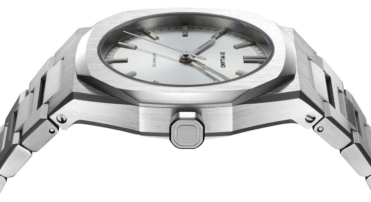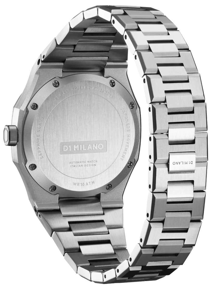 Часы D1 Milano Antique Code ATBU01 – стильный аксессуар для современных женщин. Часы механические с автоподзаводом. Корпус выполнен из прочной нержавеющей стали 316L, а серебристый циферблат украшен простыми штрихами вместо цифр. Стрелки с люминесцентным покрытиемЛюминесцентное покрытиеПозволяет считывать показания времени в темноте. Производители наносят на стрелки, часовые индексы, безель или поверхность циферблата светонакопительный состав, дающий холодное свечение.. Задняя крышка закреплена на 8 винтах, что обеспечивает надежность конструкции. Стальной браслет на скрытой раскладной застёжкеРаскладная застёжкаТакой тип застёжки используется только на браслетах из металла. Она никогда не раскрывается полностью, происходит разделение на 2 и более частей. Раскладывающая застёжка снизит вероятность потери часов к минимуму.. Часы имеют водозащиту 100 метров (100WR), что позволит плавать, нырять и заниматься другими водными видами спорта. Часы сочетают в себе классический дизайн и современные технологии производства.