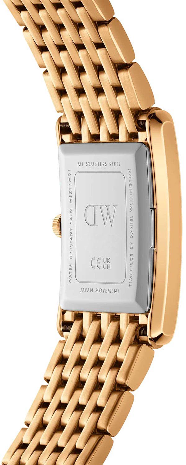 Женские наручные часы с минеральным стекломМинеральное стеклоМинеральное стекло представляет собой искусственно выращенный минерал кварца. Такое стекло отличается особой устойчивостью к повреждениям и царапинам. Уступает по некоторым качествам сапфировому стеклу. Daniel Wellington Bound 9-Link Gold DW00100705, кварцевый механизм с высокой точностью. Корпус часов изготовлен из нержавеющей стали с PVD-покрытиемPVDУльтратонкое покрытие наносится в технике вакуумного напыления, сочетает в себе нитрид титана особой прочности со слоем золота или оксида хрома. Несёт в себе декоративную или защитную функцию.. Накладные метки в виде штрихов. Японский кварцевый механизм. Рифленая заводная головка. Класс водозащиты: 30 метров, позволит защитить корпус от случайных брызг или капель дождя. Стальной браслет на раскладной застёжкеРаскладная застёжкаТакой тип застёжки используется только на браслетах из металла. Она никогда не раскрывается полностью, происходит разделение на 2 и более частей. Раскладывающая застёжка снизит вероятность потери часов к минимуму. с PVD-покрытиемPVDУльтратонкое покрытие наносится в технике вакуумного напыления, сочетает в себе нитрид титана особой прочности со слоем золота или оксида хрома. Несёт в себе декоративную или защитную функцию..