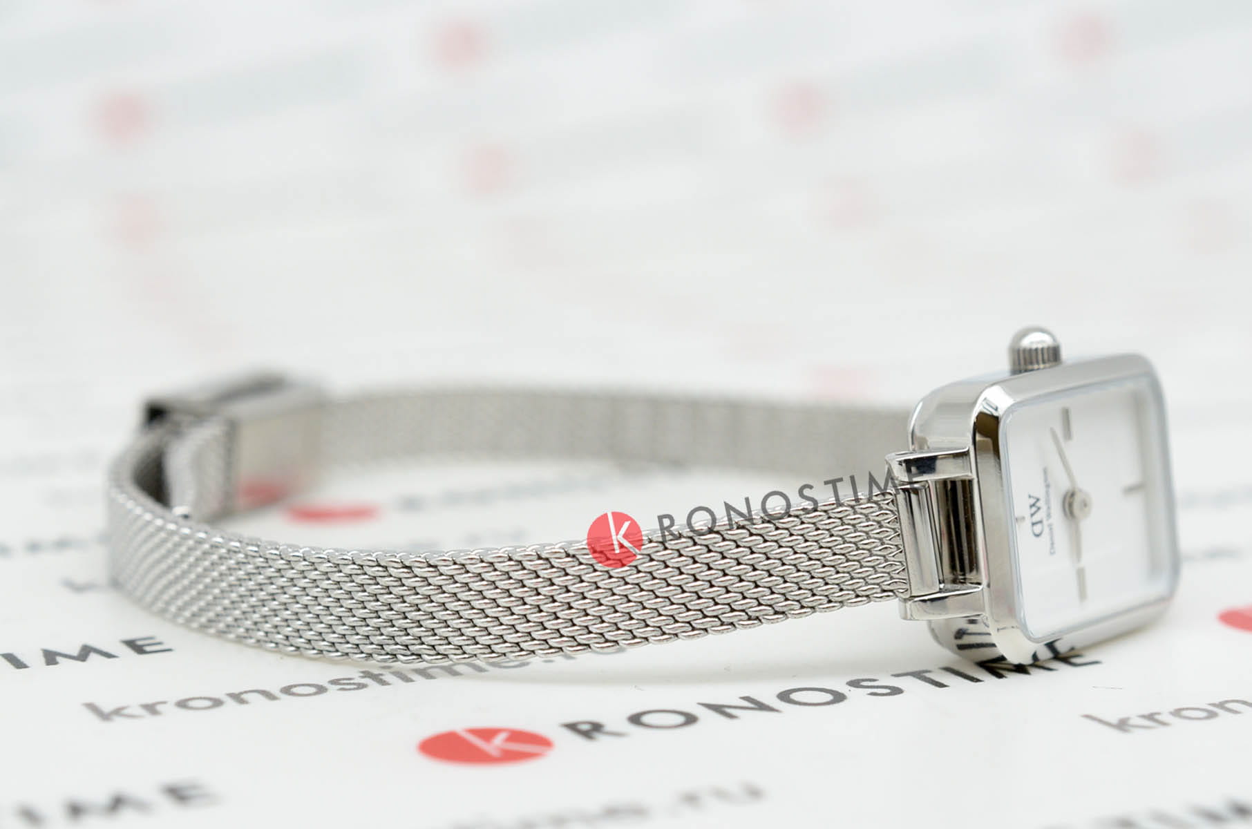 Женские наручные часы с минеральным стекломМинеральное стеклоМинеральное стекло представляет собой искусственно выращенный минерал кварца. Такое стекло отличается особой устойчивостью к повреждениям и царапинам. Уступает по некоторым качествам сапфировому стеклу. Daniel Wellington Quadro Mini Sterling DW00100726, кварцевый механизм с высокой точностью. Корпус часов изготовлен из нержавеющей стали. Накладные метки в виде штрихов. Японский кварцевый механизм. Рифленая заводная головка. Класс водозащиты: 30 метров, позволит защитить корпус от случайных брызг или капель дождя. Стальной браслет миланского плетения на раскладном замкеРаскладной замокДанный вариант застежки используется только на часах с металлическим браслетом. Отличительная особенность такого крепления в том, что длина браслета становится универсальной и вы можете самостоятельно отрегулировать нужный вам размер – застежка просто двигается по браслету часов..