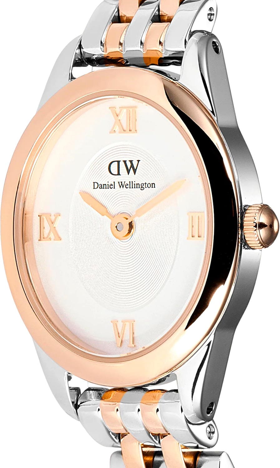 Daniel Wellington Ophelia — женственные часы с овальным корпусом 22 мм из нержавеющей стали с изящным. Глубокий циферблат с радиальным переливом украшен римскими индексами, что придаёт образу классическую элегантность.БезельБезельВнешний ободок, закрепляющий стекло. В спортивных часах так называется поворотное кольцо с делениями на циферблате, выполняет роль таймера – замеряет отрезки времени на шкале. Неподвижный безель – элемент декора. Однонаправленно вращающийся безель на дайверских часах позволяет фиксировать моменты погружения и выныривания на поверхность. с PVD-покрытиемPVDУльтратонкое покрытие наносится в технике вакуумного напыления, сочетает в себе нитрид титана особой прочности со слоем золота или оксида хрома. Несёт в себе декоративную или защитную функцию..