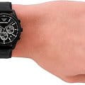 Мужские часы Emporio Armani Antonio AR11583 - стильные с кварцевым механизмом сочетают в себе элегантность и функциональность, что делает их идеальным аксессуаром для современного мужчины. Корпус часов из нержавеющей стали с черным IP-покрытиемIP-покрытиеМетод ионного напыления. Демонстрирует повышенную устойчивость к истиранию, окислению и химическим веществам. Под воздействием высокого давления и температуры около 1500°C молекулы металла надёжно соединяются с частицами корпуса часов., что обеспечивает долговечность и устойчивость к внешним воздействиям. Минеральное стеклоМинеральное стеклоМинеральное стекло представляет собой искусственно выращенный минерал кварца. Такое стекло отличается особой устойчивостью к повреждениям и царапинам. Уступает по некоторым качествам сапфировому стеклу. защищает черный циферблат, добавляя изысканности всей конструкции. Размер корпуса составляет 41 мм, что придаёт часам солидный внешний вид, не утяжеляя при этом запястье. Часы имеют водонепроницаемость WR50 (5 атм), это позволяет использовать их в повседневной жизни, не опасаясь воздействия воды. Кожаный черный ремешок с классической застежкой обеспечивает комфортное и надёжное крепление на запястье. Этот хронографХронографФункция позволяет измерять отрезки времени с особой точностью: часы, минуты, секунды. Верным признаком хронографа является наличие на циферблате 3 дополнительных окошек-счётчиков. с функцией секундомераСекундомерСекундоме́р — прибор, способный измерять интервалы времени с точностью до долей секунды. и календарем, отображающим дату, станет идеальным аксессуаром для тех, кто ценит функциональность и итальянское качество.
