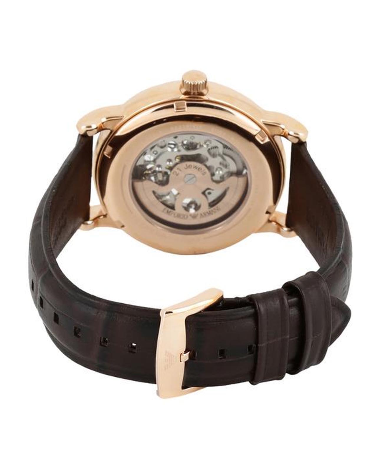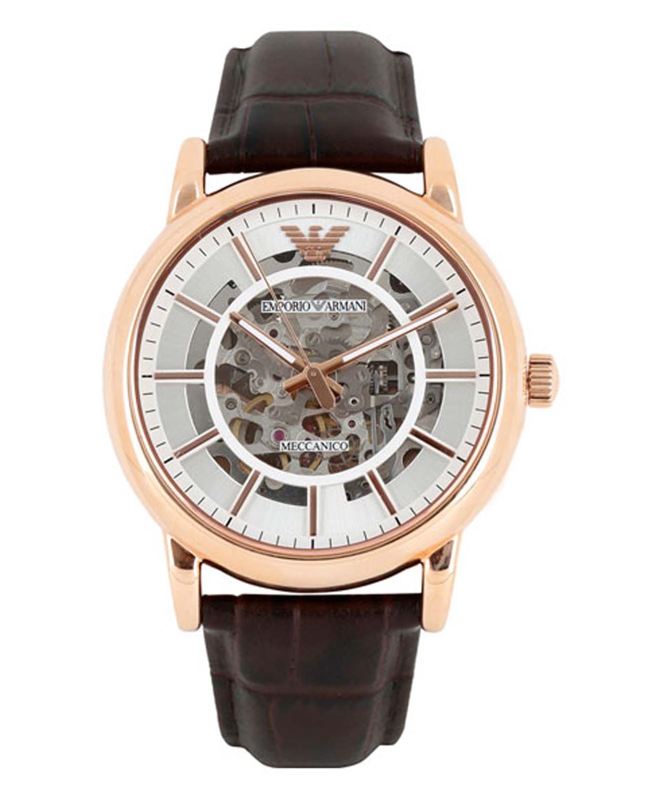 Мужские механические часы с минеральным стекломМинеральное стеклоМинеральное стекло представляет собой искусственно выращенный минерал кварца. Такое стекло отличается особой устойчивостью к повреждениям и царапинам. Уступает по некоторым качествам сапфировому стеклу. Emporio Armani Dress AR1983. Корпус часов изготовлен из стали с PVD-покрытиемPVDУльтратонкое покрытие наносится в технике вакуумного напыления, сочетает в себе нитрид титана особой прочности со слоем золота или оксида хрома. Несёт в себе декоративную или защитную функцию.. Стрелки с люминесцентным покрытиемЛюминесцентное покрытиеПозволяет считывать показания времени в темноте. Производители наносят на стрелки, часовые индексы, безель или поверхность циферблата светонакопительный состав, дающий холодное свечение.. Класс водозащиты: 30 метров, позволит защитить корпус от случайных брызг или капель дождя. Кожаный ремешок на стандартной застежке.