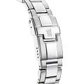 Яркий стиль и функциональность этих часов придутся по душе активной девушке. Часы-хронографХронографФункция позволяет измерять отрезки времени с особой точностью: часы, минуты, секунды. Верным признаком хронографа является наличие на циферблате 3 дополнительных окошек-счётчиков.. Кварцевый механизм с высокой точностью. Минеральное стеклоМинеральное стеклоМинеральное стекло представляет собой искусственно выращенный минерал кварца. Такое стекло отличается особой устойчивостью к повреждениям и царапинам. Уступает по некоторым качествам сапфировому стеклу. устойчивое к появлению царапин, обладающее высокой прозрачностью. Перламутровый циферблат. Метки украшены кристаллами. Класс водозащиты: 100 метров, позволит плавать, нырять и заниматься другими водными видами спорта. Корпус часов изготовлен из нержавеющей стали. Неподвижный безельБезельВнешний ободок, закрепляющий стекло. В спортивных часах так называется поворотное кольцо с делениями на циферблате, выполняет роль таймера – замеряет отрезки времени на шкале. Неподвижный безель – элемент декора. Однонаправленно вращающийся безель на дайверских часах позволяет фиксировать моменты погружения и выныривания на поверхность.. Браслет с раскладной застёжкойРаскладная застёжкаТакой тип застёжки используется только на браслетах из металла. Она никогда не раскрывается полностью, происходит разделение на 2 и более частей. Раскладывающая застёжка снизит вероятность потери часов к минимуму..
