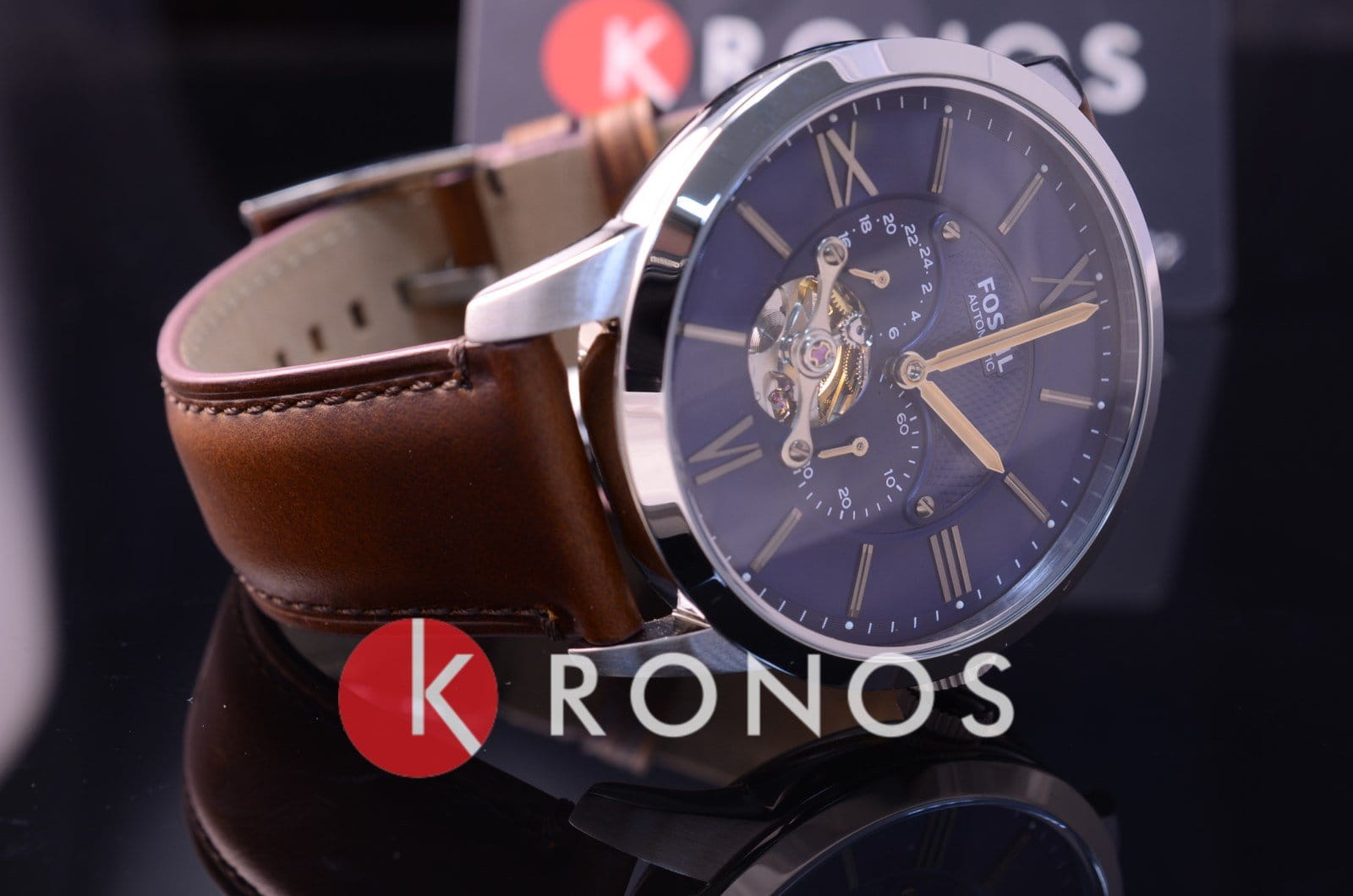 Наручные часы от популярного американского бренда Fossil - они будут замечательно смотреться как с повседневным стилем одежды, так и костюмом; браслет: кожа; корпус: сталь; цвет браслета: темно-коричневый; цвет корпуса: серебро; цвет циферблата: синий; ширина браслета: 22MM; водонепроницаемость: 5 ATM; диаметр корпуса: 44MM