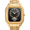 Мужские американские механические часы с автоподзаводом и с минеральным стекломМинеральное стеклоМинеральное стекло представляет собой искусственно выращенный минерал кварца. Такое стекло отличается особой устойчивостью к повреждениям и царапинам. Уступает по некоторым качествам сапфировому стеклу. Fossil Inscription ME3239, кварцевый механизм с высокой точностью. Прямоугольный корпус часов изготовлен из нержавеющей стали с IP-покрытиемIP-покрытиеМетод ионного напыления. Демонстрирует повышенную устойчивость к истиранию, окислению и химическим веществам. Под воздействием высокого давления и температуры около 1500°C молекулы металла надёжно соединяются с частицами корпуса часов.. БезельБезельВнешний ободок, закрепляющий стекло. В спортивных часах так называется поворотное кольцо с делениями на циферблате, выполняет роль таймера – замеряет отрезки времени на шкале. Неподвижный безель – элемент декора. Однонаправленно вращающийся безель на дайверских часах позволяет фиксировать моменты погружения и выныривания на поверхность. дополнен стильными винтами. Прозрачное окошко на текстурированном циферблате позволяет наблюдать за мерным ходом часового механизма. Метки в виде штрихов. Метки и стрелки с люминесцентным покрытиемЛюминесцентное покрытиеПозволяет считывать показания времени в темноте. Производители наносят на стрелки, часовые индексы, безель или поверхность циферблата светонакопительный состав, дающий холодное свечение.. Рифленая заводная головка с защитой. Класс водозащиты: 50 метров, позволит защитить корпус от случайных брызг или капель дождя. Стальной браслет с IP-покрытиемIP-покрытиеМетод ионного напыления. Демонстрирует повышенную устойчивость к истиранию, окислению и химическим веществам. Под воздействием высокого давления и температуры около 1500°C молекулы металла надёжно соединяются с частицами корпуса часов. на раскладной застёжкеРаскладная застёжкаТакой тип застёжки используется только на браслетах из металла. Она никогда не раскрывается полностью, происходит разделение на 2 и более частей. Раскладывающая застёжка снизит вероятность потери часов к минимуму..