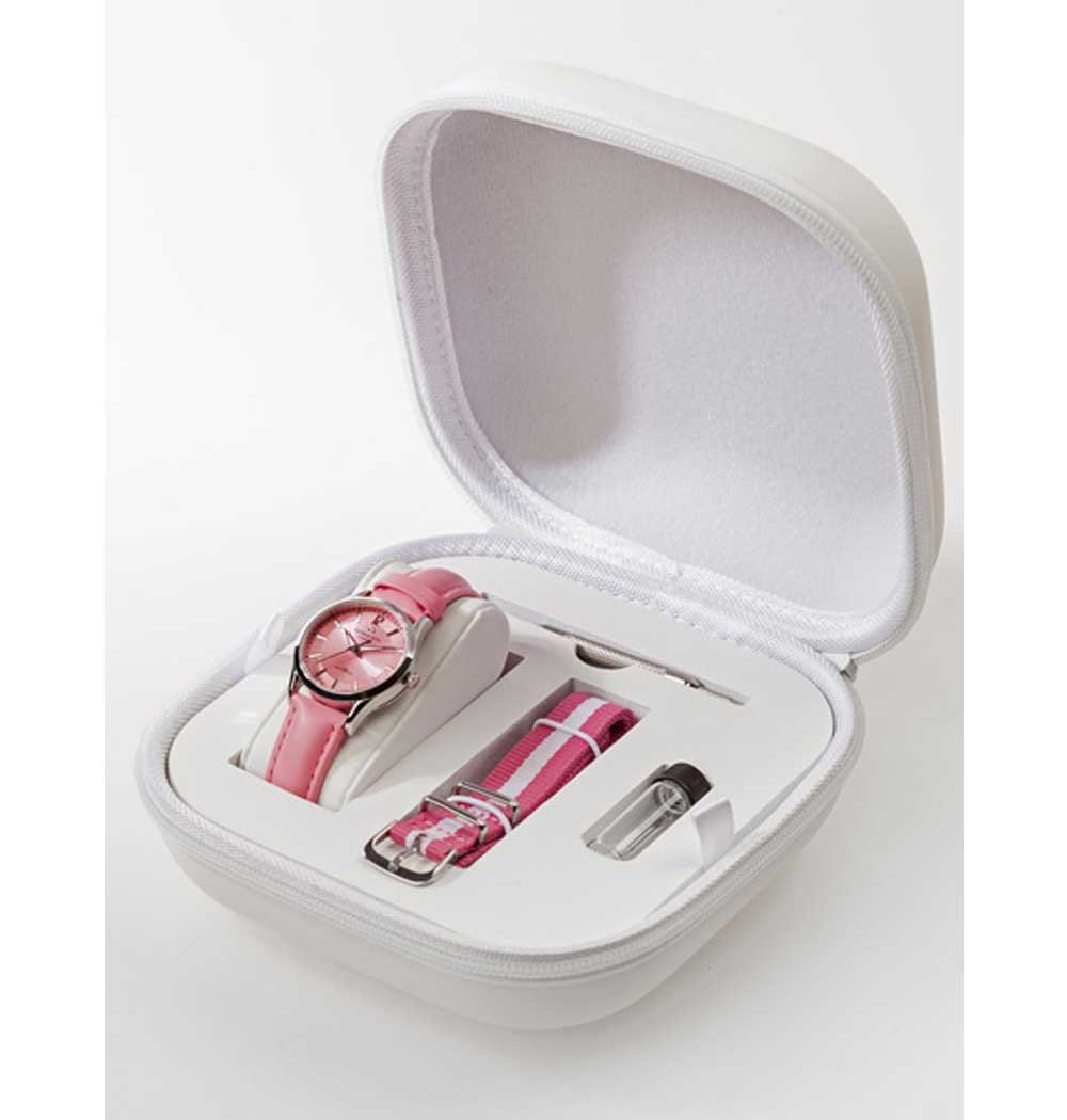 Кварцевые часы Водостойкость WR 50 Часы, минуты, секунды, дата, день недели, 12/24х часовой формат времени Люминесцентные стрелки Корпус выполнен из нержавеющей стали с PVD покрытием Диаметр корпуса 30 мм Сапфировое стекло с антибликовым покрытием Кожаный ремешок В комплекте дополнительный текстильный ремешок Часы украшены бриллиантом