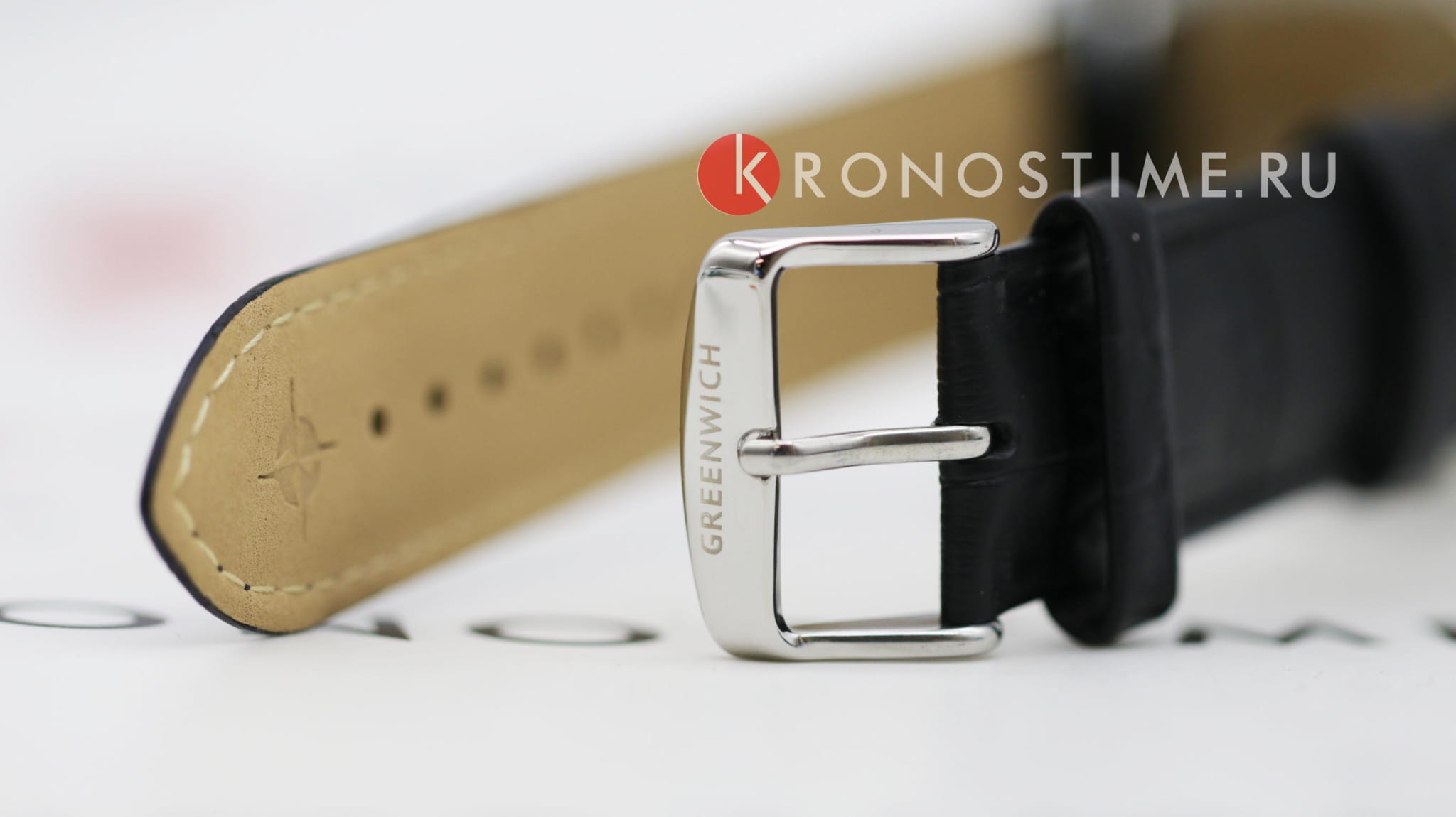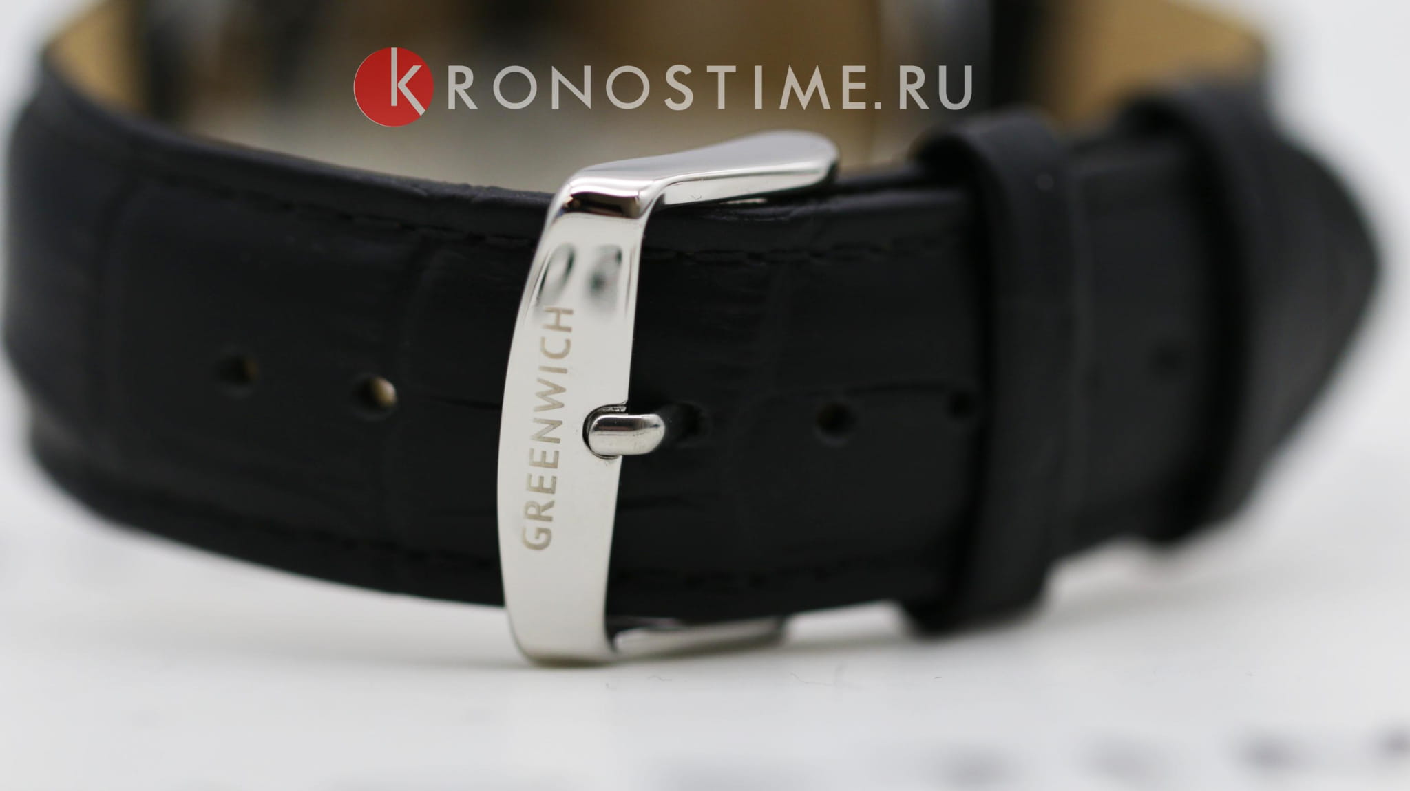 Мужские английские часы Greenwich Moon Walker GW 058.11.31 с минеральным стекломМинеральное стеклоМинеральное стекло представляет собой искусственно выращенный минерал кварца. Такое стекло отличается особой устойчивостью к повреждениям и царапинам. Уступает по некоторым качествам сапфировому стеклу.. В часах привлекает сочетание спортивного дизайна и классических линий корпуса из нержавеющей стали. Кварцевый механизм показывает время с точностью до секунды, дату, день недели. Все индикаторы на черном циферблате хорошо читаются, они выделены накладными рамками с зеркальной полировкой. В позиции «6 часов» расположен индикатор лунных фаз. Его украшением служит элемент с объемным рисунком, напоминающем изрытую кратерами поверхность спутника нашей планеты. Крупные стрелки и риски видны при любых условиях благодаря люминесцентному покрытиюЛюминесцентное покрытиеПозволяет считывать показания времени в темноте. Производители наносят на стрелки, часовые индексы, безель или поверхность циферблата светонакопительный состав, дающий холодное свечение., которое в темноте светится приятным для глаз зеленоватым свечением. Повышенная водостойкость равна 10 атмосфер.