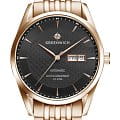 Мужские часы с минеральным стекломМинеральное стеклоМинеральное стекло представляет собой искусственно выращенный минерал кварца. Такое стекло отличается особой устойчивостью к повреждениям и царапинам. Уступает по некоторым качествам сапфировому стеклу. Greenwich Good Luck Classic GW 074.40.31, представляют собой классический вариант для повседневной носки. В центральной части циферблата — отличительная черта моделей этой серии: гильоше, объемные линии которого напоминают волны. Обратите внимание на форму пластины, где крепятся накладные риски: она сделана в форме латинской буквы G, первой буквы в названии бренда. Часы характеризуются традиционными формами, лаконичным исполнением, что делает модель элегантным дополнением к деловому костюму. Сквозь прозрачную заднюю крышку вы увидите детали механизма TMI с декорированным ротором: на нем выгравировано изображение символа английских моряков — парусника. Корпус, браслет и раскладная застёжкаРаскладная застёжкаТакой тип застёжки используется только на браслетах из металла. Она никогда не раскрывается полностью, происходит разделение на 2 и более частей. Раскладывающая застёжка снизит вероятность потери часов к минимуму. выполнены из гипоаллергенной нержавеющей стали с PVD-покрытиемPVDУльтратонкое покрытие наносится в технике вакуумного напыления, сочетает в себе нитрид титана особой прочности со слоем золота или оксида хрома. Несёт в себе декоративную или защитную функцию.. Дизайн, актуальный для любого современного образа, и надежность используемых материалов делают автоматические часы Greenwich удобным и стильным аксессуаром на каждый день. Окошко даты и дня недели находится в положении 3 часа. Класс водозащиты: 100 метров, позволит плавать, нырять и заниматься другими водными видами спорта.