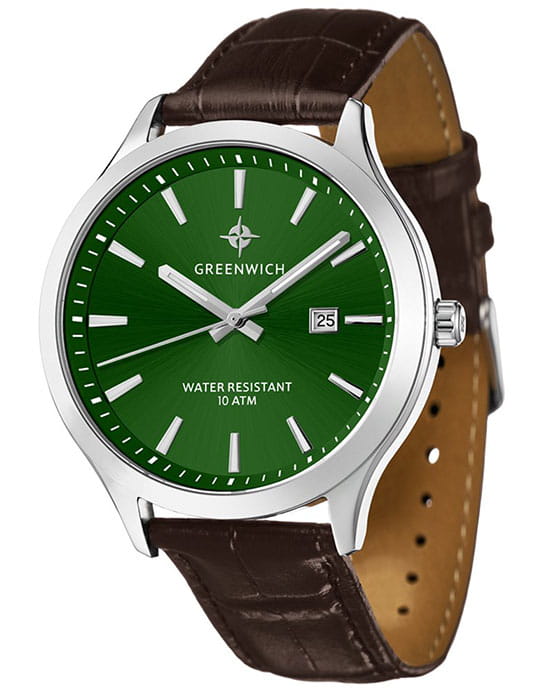 Мужские наручные часы Greenwich GW 041.12.38 представляют собой классический вариант для повседневной носки. Циферблат украшается брендовым логотипом, изображающим Розу Ветров. Эмблема мореплавательского духа символизирует удачу, стремление достигнуть поставленной цели. Часы характеризуются традиционными формами, лаконичным исполнением, что делает модель элегантным дополнением к деловому костюму. Надёжный корпус из нержавеющей стали спасает японский механизм от повреждений и ударов. Минеральное стекло отличается устойчивостью к образованию царапин на поверхности.