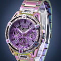 Женские наручные часы-скелетоны Guess Queen GW0464L4 с минеральным стекломМинеральное стеклоМинеральное стекло представляет собой искусственно выращенный минерал кварца. Такое стекло отличается особой устойчивостью к повреждениям и царапинам. Уступает по некоторым качествам сапфировому стеклу., кварцевый механизм с высокой точностью. Класс водозащиты: 30 метров, позволит защитить корпус от случайных брызг или капель дождя. Корпус часов изготовлен из стали с IP-покрытиемIP-покрытиеМетод ионного напыления. Демонстрирует повышенную устойчивость к истиранию, окислению и химическим веществам. Под воздействием высокого давления и температуры около 1500°C молекулы металла надёжно соединяются с частицами корпуса часов.. Браслет с раскладной застёжкойРаскладная застёжкаТакой тип застёжки используется только на браслетах из металла. Она никогда не раскрывается полностью, происходит разделение на 2 и более частей. Раскладывающая застёжка снизит вероятность потери часов к минимуму. с IP-покрытиемIP-покрытиеМетод ионного напыления. Демонстрирует повышенную устойчивость к истиранию, окислению и химическим веществам. Под воздействием высокого давления и температуры около 1500°C молекулы металла надёжно соединяются с частицами корпуса часов.. 12-ти и 24-х часовой формат времени, дата и день недели вынесены на отдельные циферблаты. Метки в виде штрихов. Рифленая заводная головка с защитой. Стрелки с люминесцентным покрытиемЛюминесцентное покрытиеПозволяет считывать показания времени в темноте. Производители наносят на стрелки, часовые индексы, безель или поверхность циферблата светонакопительный состав, дающий холодное свечение..