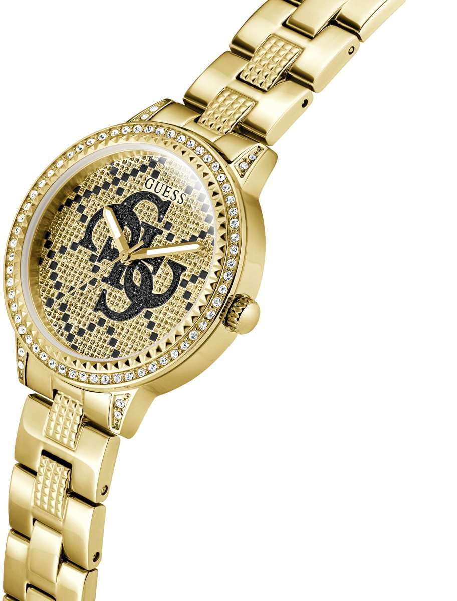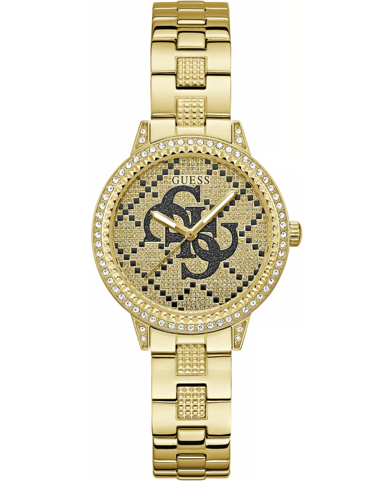 Женские наручные часы с минеральным стекломМинеральное стеклоМинеральное стекло представляет собой искусственно выращенный минерал кварца. Такое стекло отличается особой устойчивостью к повреждениям и царапинам. Уступает по некоторым качествам сапфировому стеклу. Guess Trend G Lace GW0944L2  — это изысканный аксессуар, который добавит вашему современному образу нотку гламура и элегантности. Часы оснащены надежным кварцевым механизмом, который обеспечивает точность и долговечность. Изысканный корпус часов изготовлен из стали с IP-покрытиемIP-покрытиеМетод ионного напыления. Демонстрирует повышенную устойчивость к истиранию, окислению и химическим веществам. Под воздействием высокого давления и температуры около 1500°C молекулы металла надёжно соединяются с частицами корпуса часов.. БезельБезельВнешний ободок, закрепляющий стекло. В спортивных часах так называется поворотное кольцо с делениями на циферблате, выполняет роль таймера – замеряет отрезки времени на шкале. Неподвижный безель – элемент декора. Однонаправленно вращающийся безель на дайверских часах позволяет фиксировать моменты погружения и выныривания на поверхность., украшенный кристаллами, придает часам стильный и современный вид. Класс водозащиты: 30 метров, позволит защитить корпус от случайных брызг или капель дождя. Стрелки с люминесцентным покрытиемЛюминесцентное покрытиеПозволяет считывать показания времени в темноте. Производители наносят на стрелки, часовые индексы, безель или поверхность циферблата светонакопительный состав, дающий холодное свечение. обеспечивают отличную видимость в темноте. Стальной браслет с IP-покрытиемIP-покрытиеМетод ионного напыления. Демонстрирует повышенную устойчивость к истиранию, окислению и химическим веществам. Под воздействием высокого давления и температуры около 1500°C молекулы металла надёжно соединяются с частицами корпуса часов. на раскладной застёжкеРаскладная застёжкаТакой тип застёжки используется только на браслетах из металла. Она никогда не раскрывается полностью, происходит разделение на 2 и более частей. Раскладывающая застёжка снизит вероятность потери часов к минимуму. добавляет модели элегантности и удобства, подчеркивая вашу индивидуальность и стиль. Эта модель станет идеальным аксессуаром для ежедневного использования и особых мероприятий, подчеркивая вашу индивидуальность и стиль.