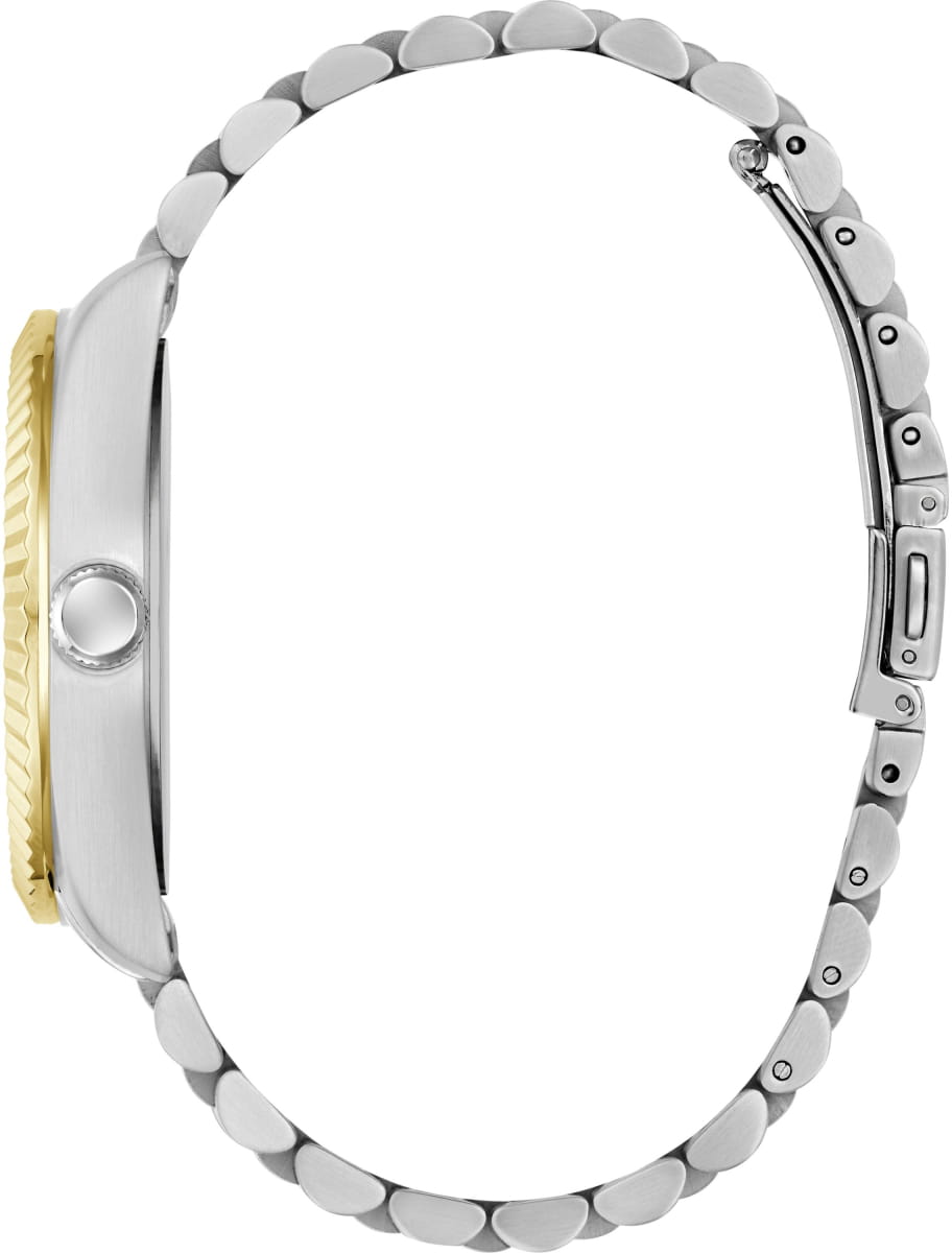 Мужские наручные часы Guess Dress Jaden GW0977G4 – это сочетание элегантности и современного стиля. Изысканные часы оснащены надежным кварцевым механизмом, который обеспечивает точность хода. Корпус часов выполнен из нержавеющей стали с безелемБезельВнешний ободок, закрепляющий стекло. В спортивных часах так называется поворотное кольцо с делениями на циферблате, выполняет роль таймера – замеряет отрезки времени на шкале. Неподвижный безель – элемент декора. Однонаправленно вращающийся безель на дайверских часах позволяет фиксировать моменты погружения и выныривания на поверхность. с IP-покрытиемIP-покрытиеМетод ионного напыления. Демонстрирует повышенную устойчивость к истиранию, окислению и химическим веществам. Под воздействием высокого давления и температуры около 1500°C молекулы металла надёжно соединяются с частицами корпуса часов. диаметром 42 мм и толщиной 11 мм, придающий модели особый характер. Циферблат оснащен метками в виде штрихов. Вынесенный циферблат с 24-х часовым указателем времени. Окошко даты в позиции 3 часов. Люминесцентное покрытиеЛюминесцентное покрытиеПозволяет считывать показания времени в темноте. Производители наносят на стрелки, часовые индексы, безель или поверхность циферблата светонакопительный состав, дающий холодное свечение. на стрелках и метках обеспечивает отличную видимость в темноте. Стильный стальной браслет с IP-покрытиемIP-покрытиеМетод ионного напыления. Демонстрирует повышенную устойчивость к истиранию, окислению и химическим веществам. Под воздействием высокого давления и температуры около 1500°C молекулы металла надёжно соединяются с частицами корпуса часов. с раскладной застежкойРаскладная застёжкаТакой тип застёжки используется только на браслетах из металла. Она никогда не раскрывается полностью, происходит разделение на 2 и более частей. Раскладывающая застёжка снизит вероятность потери часов к минимуму. гарантирует комфортное ношение и надежную фиксацию. Минеральное стеклоМинеральное стеклоМинеральное стекло представляет собой искусственно выращенный минерал кварца. Такое стекло отличается особой устойчивостью к повреждениям и царапинам. Уступает по некоторым качествам сапфировому стеклу. защищает циферблат от царапин, а водозащита 50WR предохраняет часы от случайных брызг и дождя. Эта модель станет отличным выбором для тех, кто ценит стиль и функциональность в одном аксессуаре.