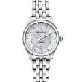 Женские механические часы Hamilton Jazzmaster Lady Auto H42215111 с автоматическим подзаводом. Корпус и браслет изготовлены из нержавеющей стали. Сапфировое стеклоСапфировое стеклоПрочный и надёжный материал из кристалла сапфира синтетического происхождения, характеризующийся особой твёрдостью и устойчивостью к царапинам и повреждениям. с антибликовым покрытием. Стальной браслет на застёжке-бабочке с кнопкамиЗастёжка "бабочка"Такой вид застёжки дополняется предохранителями, помогающими избежать случайного раскрытия браслета. Обладают изящным исполнением. . Стрелки и метки с люминесцентным покрытиемЛюминесцентное покрытиеПозволяет считывать показания времени в темноте. Производители наносят на стрелки, часовые индексы, безель или поверхность циферблата светонакопительный состав, дающий холодное свечение.. Класс водозащиты: 50 метров, позволит защитить корпус от случайных брызг или капель дождя. Окошко даты находится в положении 6 часов.