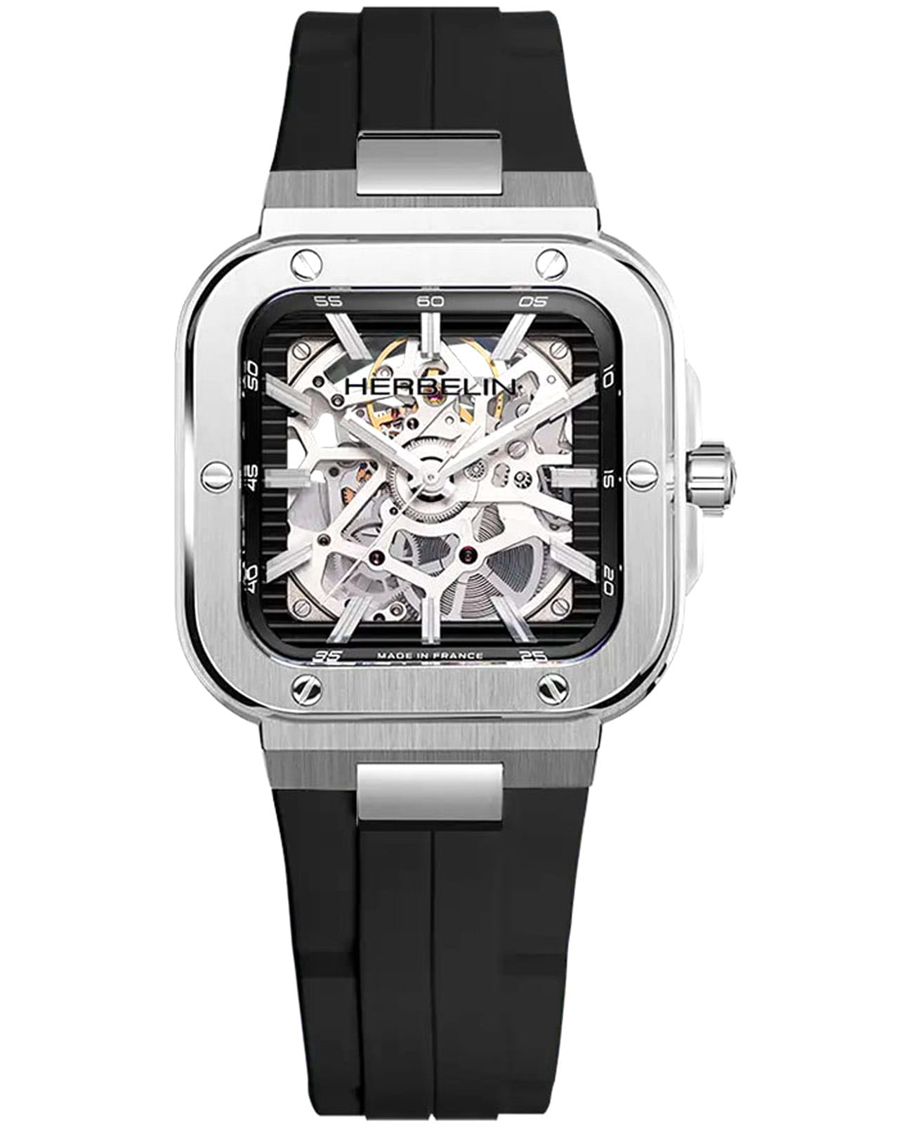 Мужские механические часы-скелетоны с автоподзаводом Herbelin Cap Camarat 1646SQ14CA – отражающий идеальное сочетание современного дизайна, надёжности и функциональности. Элегантный облик станет превосходным завершением образа, наделив его индивидуальным характером. Корпус из нержавеющей стали серебристого цвета, размером 40 х 39 мм, идеально сбалансирован и элегантен. Сапфировое стеклоСапфировое стеклоПрочный и надёжный материал из кристалла сапфира синтетического происхождения, характеризующийся особой твёрдостью и устойчивостью к царапинам и повреждениям. защищает циферблат от царапин и устойчивое к механическим повреждениям. БезельБезельВнешний ободок, закрепляющий стекло. В спортивных часах так называется поворотное кольцо с делениями на циферблате, выполняет роль таймера – замеряет отрезки времени на шкале. Неподвижный безель – элемент декора. Однонаправленно вращающийся безель на дайверских часах позволяет фиксировать моменты погружения и выныривания на поверхность. украшен винтами, заводная головка с защитой. Стрелки и метки с люминесцентным покрытиемЛюминесцентное покрытиеПозволяет считывать показания времени в темноте. Производители наносят на стрелки, часовые индексы, безель или поверхность циферблата светонакопительный состав, дающий холодное свечение.. Полимерный ремешок на стандартной застежке обеспечивает комфортное ношение. Прозрачная задняя крышка. Водозащита 100 метров позволит плавать, нырять и заниматься другими водными видами спорта. Эта модель – отличный выбор для тех, кто ищет сочетание стиля, качества и функциональности. Часы станут не только полезным аксессуаром, но и выразительным элементом вашего имиджа.