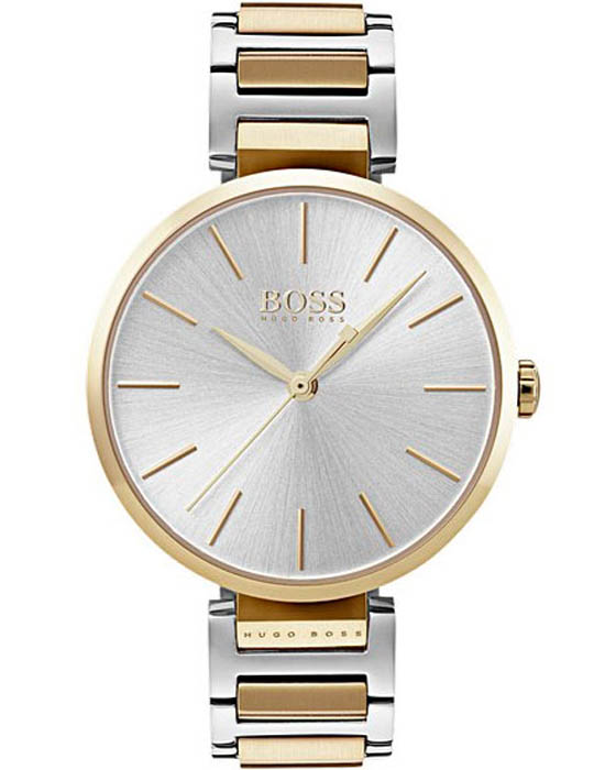 Элегантные женские часы Hugo Boss Allusion HB1502417 представлены в двухцветном корпусе из нержавеющей стали диаметром 36 мм, где золотистый безельБезельВнешний ободок, закрепляющий стекло. В спортивных часах так называется поворотное кольцо с делениями на циферблате, выполняет роль таймера – замеряет отрезки времени на шкале. Неподвижный безель – элемент декора. Однонаправленно вращающийся безель на дайверских часах позволяет фиксировать моменты погружения и выныривания на поверхность. эффектно контрастирует с серебристым браслетом. Модель оснащена кварцевым механизмом, обеспечивающим точность хода, и защищена устойчивым к царапинам минеральным стекломМинеральное стеклоМинеральное стекло представляет собой искусственно выращенный минерал кварца. Такое стекло отличается особой устойчивостью к повреждениям и царапинам. Уступает по некоторым качествам сапфировому стеклу., подчеркивающим серебристый циферблат с позолоченными индексами. Часы обладают , что делает их устойчивыми к брызгам и дождю. Удобная раскладывающаяся застежка шириной обеспечивает комфортную посадку, а классический дизайн идеально дополняет как деловые, так и вечерние образы.