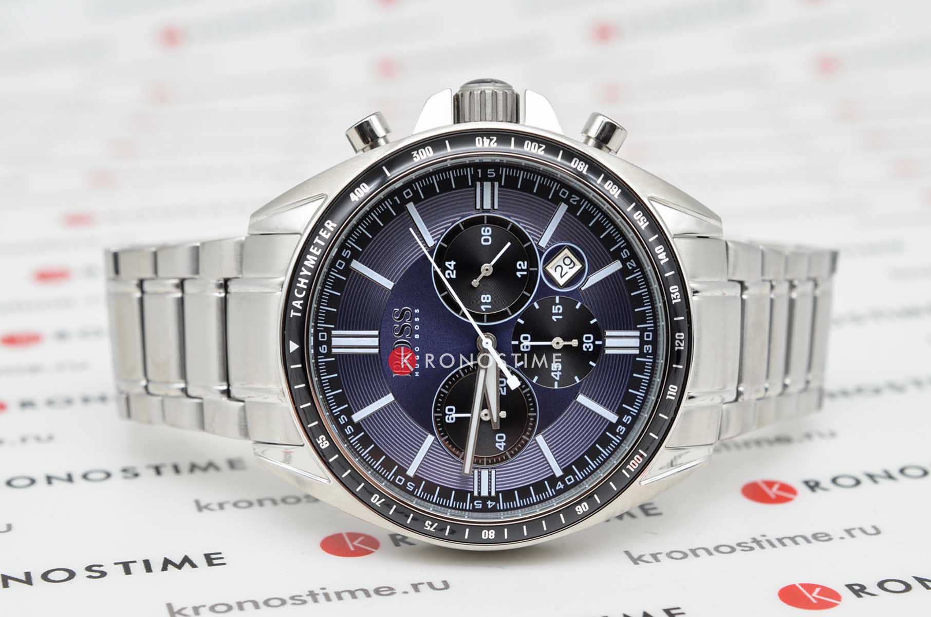 Мужские кварцевые часы Hugo Boss HB1513081 представляют собой стильный хронографХронографФункция позволяет измерять отрезки времени с особой точностью: часы, минуты, секунды. Верным признаком хронографа является наличие на циферблате 3 дополнительных окошек-счётчиков. с корпусом диаметром 45 мм из нержавеющей стали, дополненным синим циферблатом с серебристыми стрелками и индексами для оптимальной читаемости. Модель оснащена высокоточным кварцевым механизмом с функцией хронографаХронографФункция позволяет измерять отрезки времени с особой точностью: часы, минуты, секунды. Верным признаком хронографа является наличие на циферблате 3 дополнительных окошек-счётчиков., включая 60-минутный счетчик и 24-часовой индикатор, а также тахиметрической шкалой на неподвижном безелеБезельВнешний ободок, закрепляющий стекло. В спортивных часах так называется поворотное кольцо с делениями на циферблате, выполняет роль таймера – замеряет отрезки времени на шкале. Неподвижный безель – элемент декора. Однонаправленно вращающийся безель на дайверских часах позволяет фиксировать моменты погружения и выныривания на поверхность. с IP-покрытиемIP-покрытиеМетод ионного напыления. Демонстрирует повышенную устойчивость к истиранию, окислению и химическим веществам. Под воздействием высокого давления и температуры около 1500°C молекулы металла надёжно соединяются с частицами корпуса часов. для расчетов скорости. Циферблат защищен устойчивым к царапинам минеральным стекломМинеральное стеклоМинеральное стекло представляет собой искусственно выращенный минерал кварца. Такое стекло отличается особой устойчивостью к повреждениям и царапинам. Уступает по некоторым качествам сапфировому стеклу., а водонепроницаемость 5 ATM (50 метров) обеспечивает защиту от брызг и дождя, делая часы практичными для повседневного использования. Стальной браслет с застёжкой «бабочка»Застёжка "бабочка"Такой вид застёжки дополняется предохранителями, помогающими избежать случайного раскрытия браслета. Обладают изящным исполнением. обеспечивает надежную и комфортную посадку на запястье, подчеркивая спортивно-элегантный стиль модели. Люминесцентное покрытиеЛюминесцентное покрытиеПозволяет считывать показания времени в темноте. Производители наносят на стрелки, часовые индексы, безель или поверхность циферблата светонакопительный состав, дающий холодное свечение. на стрелках обеспечивает отличную видимость в темноте.