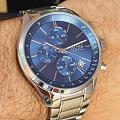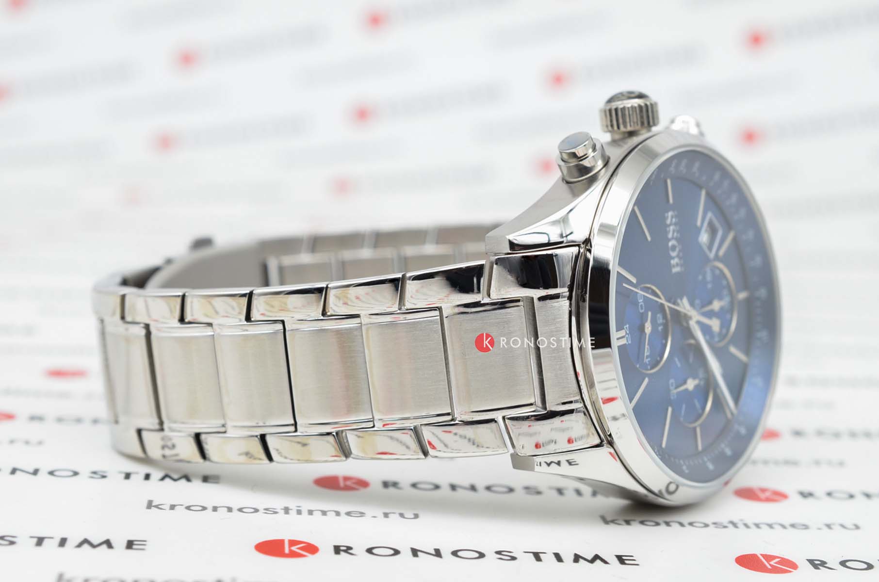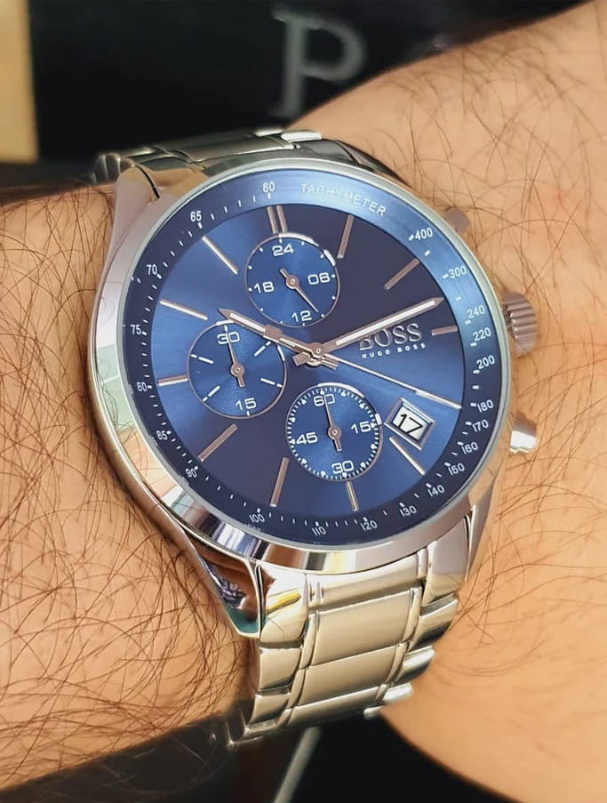 Мужские часы Hugo Boss Grand Prix HB1513478 представлены в 44-мм корпусе из нержавеющей стали с серебристым покрытием. Модель оснащена кварцевым механизмом с функцией хронографаХронографФункция позволяет измерять отрезки времени с особой точностью: часы, минуты, секунды. Верным признаком хронографа является наличие на циферблате 3 дополнительных окошек-счётчиков., тахиметраТахиметрРазмеченная шкала, располагается на ободке или безеле часов. Тахиметр позволяет рассчитать скорость на определённом участке пути, расстояние измеряется в километрах или милях. и секундомераСекундомерСекундоме́р — прибор, способный измерять интервалы времени с точностью до долей секунды., а также окошком даты на позиции 3 часа. Синий циферблат со штриховыми метками защищен устойчивым к царапинам минеральным стекломМинеральное стеклоМинеральное стекло представляет собой искусственно выращенный минерал кварца. Такое стекло отличается особой устойчивостью к повреждениям и царапинам. Уступает по некоторым качествам сапфировому стеклу.. Стальной браслет из нержавеющей стали дополнен раскладной застёжкойРаскладная застёжкаТакой тип застёжки используется только на браслетах из металла. Она никогда не раскрывается полностью, происходит разделение на 2 и более частей. Раскладывающая застёжка снизит вероятность потери часов к минимуму.. Водонепроницаемость WR30 (3 ATM) обеспечивает защиту от брызг воды и дождя.