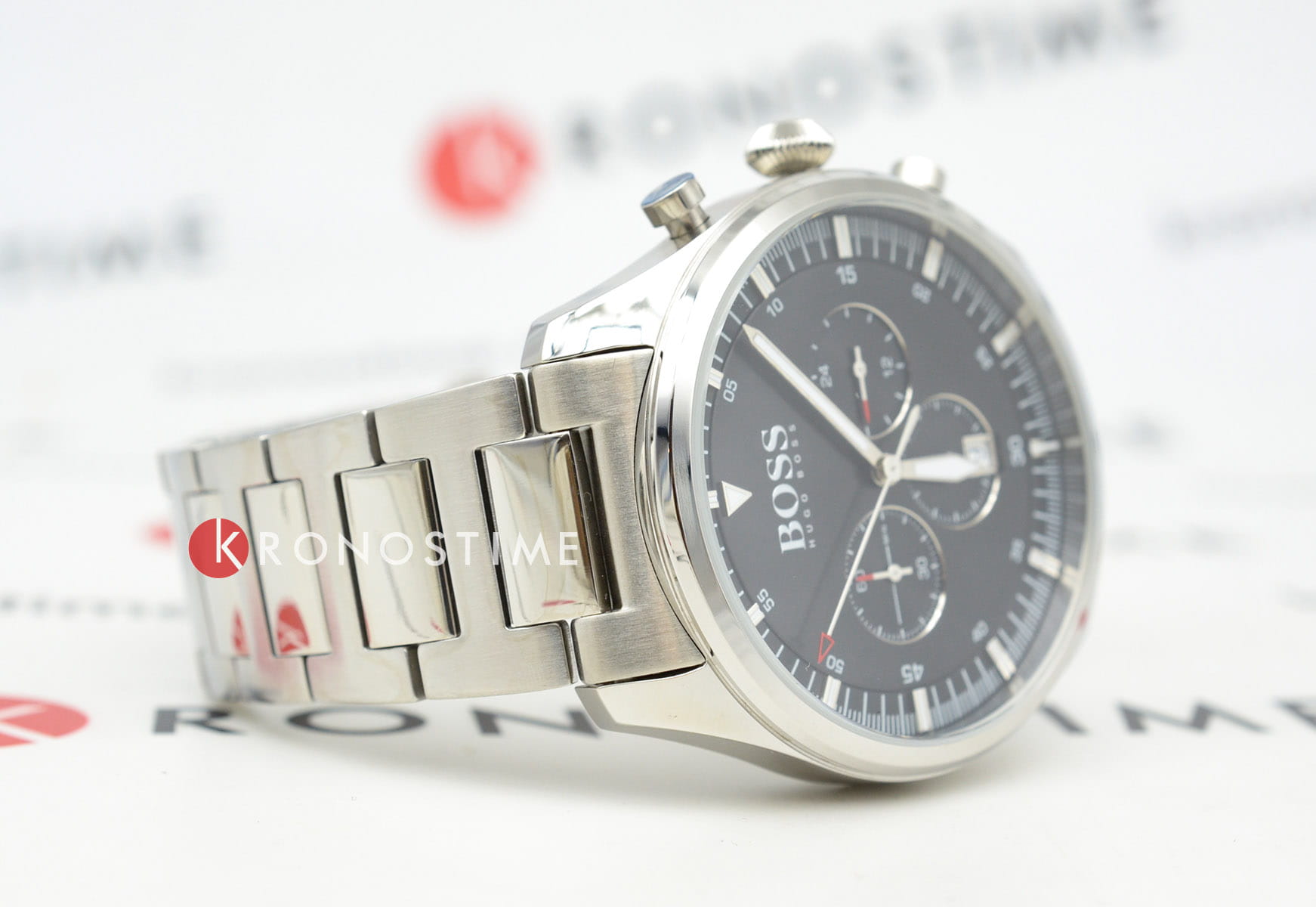 Мужские часы Hugo Boss Pionner HB1513712 представлены в круглом 44-мм корпусе из нержавеющей стали 316L с кварцевым механизмом. Модель оснащена функциями хронографаХронографФункция позволяет измерять отрезки времени с особой точностью: часы, минуты, секунды. Верным признаком хронографа является наличие на циферблате 3 дополнительных окошек-счётчиков., секундомераСекундомерСекундоме́р — прибор, способный измерять интервалы времени с точностью до долей секунды. и индикацией даты. Черный циферблат защищен минеральным стекломМинеральное стеклоМинеральное стекло представляет собой искусственно выращенный минерал кварца. Такое стекло отличается особой устойчивостью к повреждениям и царапинам. Уступает по некоторым качествам сапфировому стеклу., а водонепроницаемость 50 метров (WR30) защищает от брызг. Браслет из нержавеющей стали 316L с раскладной застёжкойРаскладная застёжкаТакой тип застёжки используется только на браслетах из металла. Она никогда не раскрывается полностью, происходит разделение на 2 и более частей. Раскладывающая застёжка снизит вероятность потери часов к минимуму. обеспечивает удобную посадку.