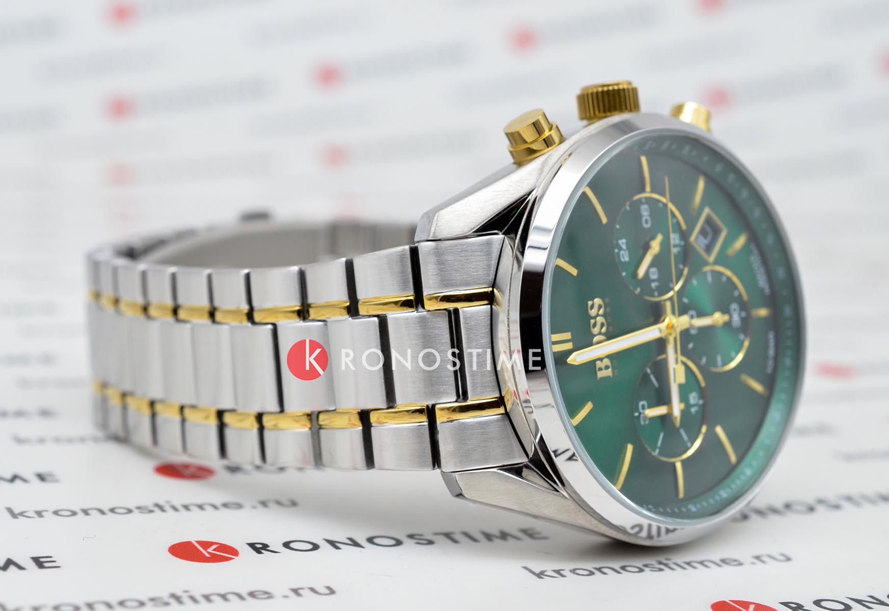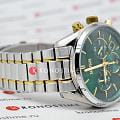 Мужские часы Hugo Boss Champion HB1513878 представлены в круглом 44-мм корпусе из нержавеющей стали. Изысканные часы оснащены кварцевым механизмом с функциями хронографаХронографФункция позволяет измерять отрезки времени с особой точностью: часы, минуты, секунды. Верным признаком хронографа является наличие на циферблате 3 дополнительных окошек-счётчиков., тахиметраТахиметрРазмеченная шкала, располагается на ободке или безеле часов. Тахиметр позволяет рассчитать скорость на определённом участке пути, расстояние измеряется в километрах или милях. и секундомераСекундомерСекундоме́р — прибор, способный измерять интервалы времени с точностью до долей секунды., а также индикацией даты. Эффектный зеленый циферблат с метками в виде штрихов защищен устойчивым к царапинам минеральным стекломМинеральное стеклоМинеральное стекло представляет собой искусственно выращенный минерал кварца. Такое стекло отличается особой устойчивостью к повреждениям и царапинам. Уступает по некоторым качествам сапфировому стеклу.. Браслет из стали серебристого цвета c PVD-покрытиемPVDУльтратонкое покрытие наносится в технике вакуумного напыления, сочетает в себе нитрид титана особой прочности со слоем золота или оксида хрома. Несёт в себе декоративную или защитную функцию. дополнен раскладной застёжкойРаскладная застёжкаТакой тип застёжки используется только на браслетах из металла. Она никогда не раскрывается полностью, происходит разделение на 2 и более частей. Раскладывающая застёжка снизит вероятность потери часов к минимуму.. Водонепроницаемость 100 метров (10 ATM) обеспечивает защиту от брызг и дождя. Hugo Boss Champion HB1513878 — это не просто часы, а настоящее произведение часового искусства, способное подчеркнуть вашу индивидуальность и статус.