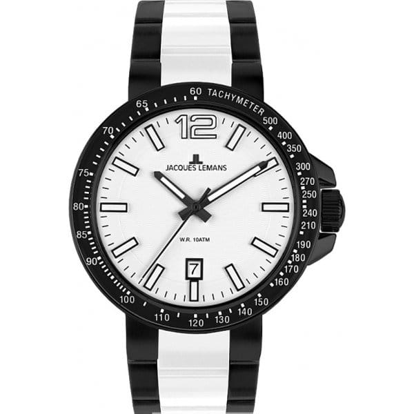 Стильные наручные часы Jacques Lemans идеально дополнят ваш образ. Механизм: Кварцевые; Корпус: сталь с IP покрытием; Браслет: стальной с IP покрытием и керамическими вставками; Стекло: Минеральное; Водозащита: 100 м. (WR 100).