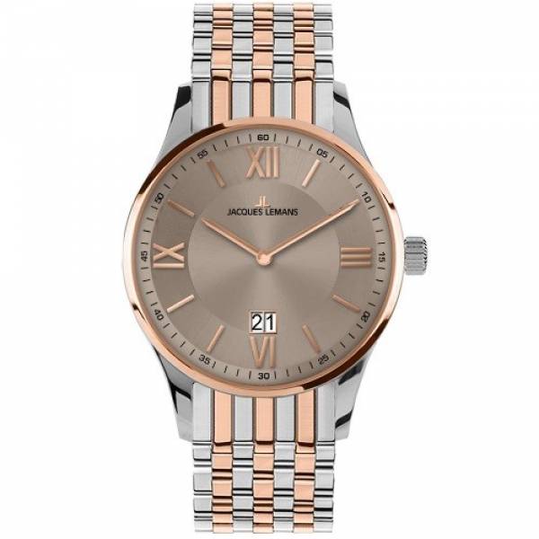 Стильные наручные часы Jacques Lemans идеально дополнят ваш образ. Механизм: Кварцевые; Корпус: сталь с частичным розовым IP покрытием; Браслет: стальной с частичным розовым IP покрытием; Стекло: Минеральное; Водозащита: 100 м. (WR 100).