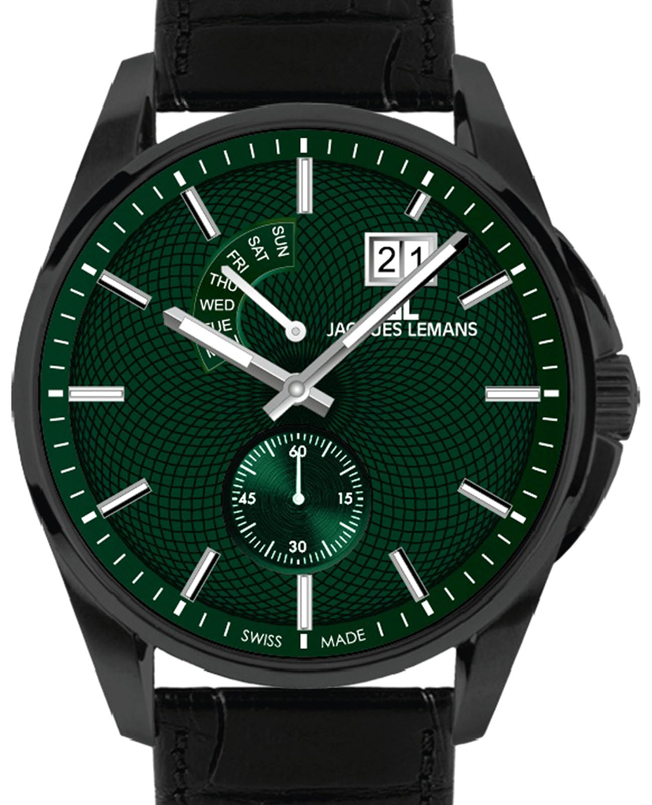 Мужские часы Jacques Lemans 1-2199K – лаконичная красота и изысканная элегантность. Оригинальная модель с классическим оформлением станет превосходным завершением образа, наделив его индивидуальным характером. Корпус выполнен из нержавеющей стали с PVD-покрытиемPVDУльтратонкое покрытие наносится в технике вакуумного напыления, сочетает в себе нитрид титана особой прочности со слоем золота или оксида хрома. Несёт в себе декоративную или защитную функцию. черного цвета, диаметром 44 мм, что обеспечивает долговечность и утончённый внешний вид. Минеральное стеклоМинеральное стеклоМинеральное стекло представляет собой искусственно выращенный минерал кварца. Такое стекло отличается особой устойчивостью к повреждениям и царапинам. Уступает по некоторым качествам сапфировому стеклу. с сапфировым напылением защищает циферблат от царапин. Кожаный ремешок на стандартной застёжке обеспечивает комфортное ношение. Водозащита 100 метров позволит плавать, нырять и заниматься другими водными видами спорта. Стрелки и метки с люминесцентным покрытиемЛюминесцентное покрытиеПозволяет считывать показания времени в темноте. Производители наносят на стрелки, часовые индексы, безель или поверхность циферблата светонакопительный состав, дающий холодное свечение. позволяющие легко определять время даже в темноте. Окошко даты находится в положении 1 час, на 6 часов вынесена индикация секунд. Широкое окошко дня недели в положении 11-12 часов позволяет показывать название дня недели. Это аксессуар для мужчины, который ценит классический стиль и функциональность.