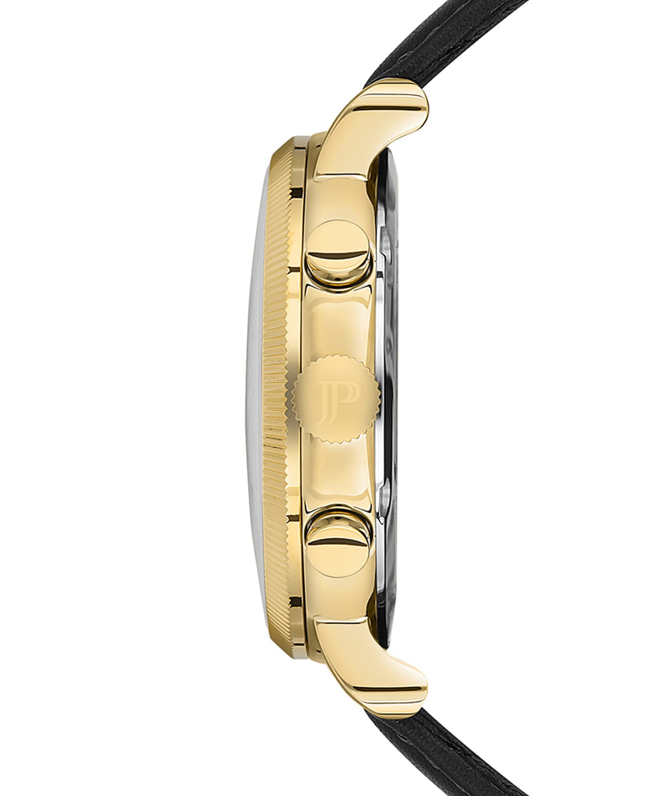 Швейцарские мужские часы-хронографХронографФункция позволяет измерять отрезки времени с особой точностью: часы, минуты, секунды. Верным признаком хронографа является наличие на циферблате 3 дополнительных окошек-счётчиков. с секундомеромСекундомерСекундоме́р — прибор, способный измерять интервалы времени с точностью до долей секунды. Jacques Philippe Vintage JPQGC192111, кварцевый механизм с высокой точностью. Сапфировое стеклоСапфировое стеклоПрочный и надёжный материал из кристалла сапфира синтетического происхождения, характеризующийся особой твёрдостью и устойчивостью к царапинам и повреждениям. устойчивое к появлению царапин, обладающее высокой прозрачностью. Корпус часов изготовлен из нержавеющей стали с IP-покрытиемIP-покрытиеМетод ионного напыления. Демонстрирует повышенную устойчивость к истиранию, окислению и химическим веществам. Под воздействием высокого давления и температуры около 1500°C молекулы металла надёжно соединяются с частицами корпуса часов.. На циферблате три дополнительных индикатора. Окошко даты находится между 4 и 5 часами. Класс водозащиты: 50 метров, позволит защитить корпус от случайных брызг или капель дождя. Кожаный ремешок на стандартной застёжке.