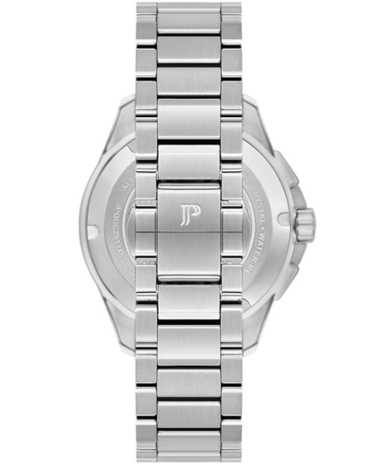 Швейцарские мужские часы-хронографХронографФункция позволяет измерять отрезки времени с особой точностью: часы, минуты, секунды. Верным признаком хронографа является наличие на циферблате 3 дополнительных окошек-счётчиков. с секундомеромСекундомерСекундоме́р — прибор, способный измерять интервалы времени с точностью до долей секунды. Jacques Philippe Magnificus JPQGC2513X6, кварцевый механизм с высокой точностью. Сапфировое стеклоСапфировое стеклоПрочный и надёжный материал из кристалла сапфира синтетического происхождения, характеризующийся особой твёрдостью и устойчивостью к царапинам и повреждениям. устойчивое к появлению царапин, обладающее высокой прозрачностью. Корпус часов изготовлен из нержавеющей стали. БезельБезельВнешний ободок, закрепляющий стекло. В спортивных часах так называется поворотное кольцо с делениями на циферблате, выполняет роль таймера – замеряет отрезки времени на шкале. Неподвижный безель – элемент декора. Однонаправленно вращающийся безель на дайверских часах позволяет фиксировать моменты погружения и выныривания на поверхность. с IP-покрытиемIP-покрытиеМетод ионного напыления. Демонстрирует повышенную устойчивость к истиранию, окислению и химическим веществам. Под воздействием высокого давления и температуры около 1500°C молекулы металла надёжно соединяются с частицами корпуса часов. с тахиметромТахиметрРазмеченная шкала, располагается на ободке или безеле часов. Тахиметр позволяет рассчитать скорость на определённом участке пути, расстояние измеряется в километрах или милях.. На циферблате три дополнительных индикатора. Окошко даты находится в положении 6 часов. Стрелки с люминесцентным покрытиемЛюминесцентное покрытиеПозволяет считывать показания времени в темноте. Производители наносят на стрелки, часовые индексы, безель или поверхность циферблата светонакопительный состав, дающий холодное свечение.. Класс водозащиты: 100 метров, позволит плавать, нырять и заниматься другими водными видами спорта. Стальной браслет на застёжке-бабочке.