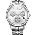 Швейцарские наручные часы Jacques Philippe Planum JPQGC671326 – это сочетание элегантности, точности и высокого качества исполнения. Корпус и браслет выполнены из нержавеющей стали 316L, что подчеркивает статус владельца и гарантирует долговечность. Классический серебристый циферблат с индикацией даты и дня недели делает модель не только стильной, но и практичной для ежедневного использования. Надежный кварцевый механизм обеспечивает точный ход, а сапфировое стеклоСапфировое стеклоПрочный и надёжный материал из кристалла сапфира синтетического происхождения, характеризующийся особой твёрдостью и устойчивостью к царапинам и повреждениям. защищает поверхность от царапин и механических повреждений. Стрелки имеют люминесцентное покрытиеЛюминесцентное покрытиеПозволяет считывать показания времени в темноте. Производители наносят на стрелки, часовые индексы, безель или поверхность циферблата светонакопительный состав, дающий холодное свечение. для удобства чтения времени в темноте. Диаметр корпуса составляет 40 мм, толщина – 12 мм, а стальной браслет шириной 20 мм с застежкой «бабочка»Застёжка "бабочка"Такой вид застёжки дополняется предохранителями, помогающими избежать случайного раскрытия браслета. Обладают изящным исполнением. обеспечивает удобную посадку на запястье. Водозащита 5 АТМ позволяет не беспокоиться о случайных брызгах и дожде.