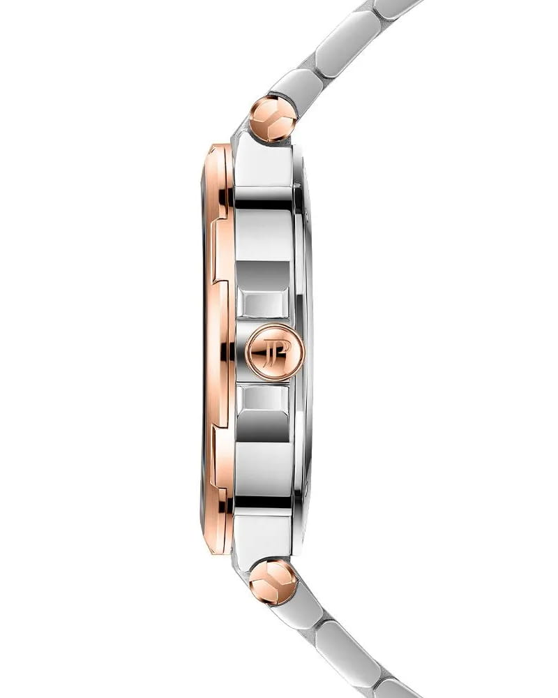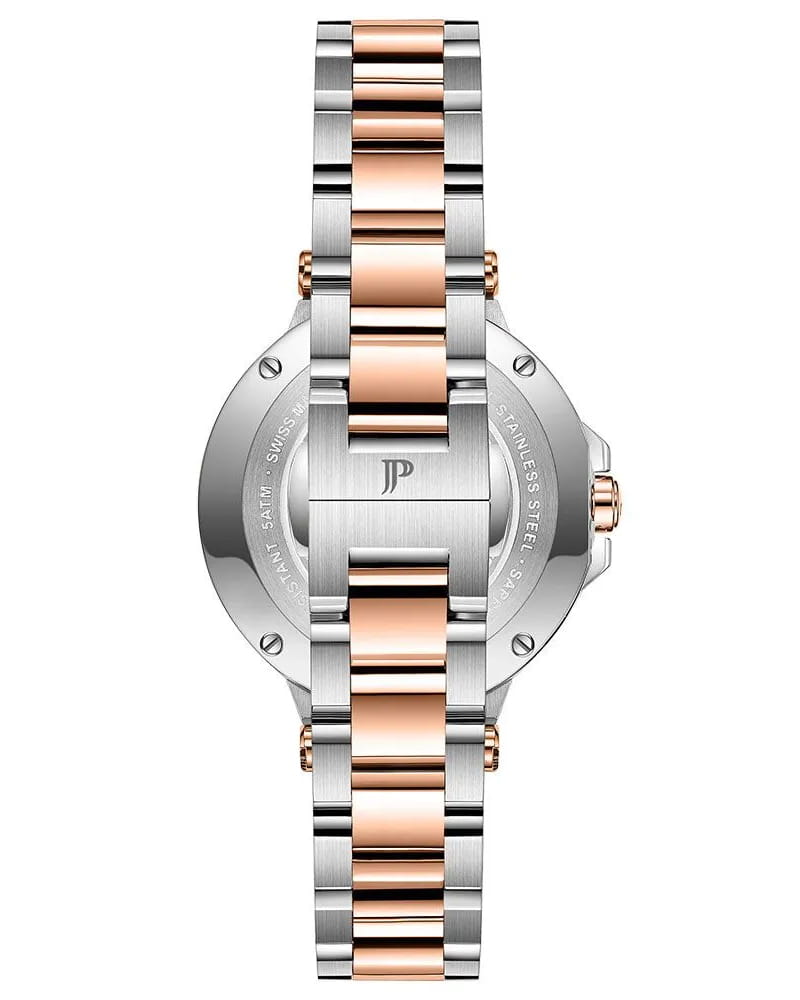 Часы Jacques Philippe JPQLS457328S из коллекции Novellus — элегантные женские часы, сочетающие швейцарское качество и современный дизайн. Корпус диаметром 36 мм выполнен из нержавеющей стали. БезельБезельВнешний ободок, закрепляющий стекло. В спортивных часах так называется поворотное кольцо с делениями на циферблате, выполняет роль таймера – замеряет отрезки времени на шкале. Неподвижный безель – элемент декора. Однонаправленно вращающийся безель на дайверских часах позволяет фиксировать моменты погружения и выныривания на поверхность. с PVD-покрытиемPVDУльтратонкое покрытие наносится в технике вакуумного напыления, сочетает в себе нитрид титана особой прочности со слоем золота или оксида хрома. Несёт в себе декоративную или защитную функцию. цвета розового золота, а серебристый циферблат защищён сапфировым стекломСапфировое стеклоПрочный и надёжный материал из кристалла сапфира синтетического происхождения, характеризующийся особой твёрдостью и устойчивостью к царапинам и повреждениям.. Внутри установлен швейцарский кварцевый механизм, обеспечивающий высокую точность хода. Водозащита 50 метров (5 ATM) защищает часы от брызг и дождя. Браслет из нержавеющей стали с PVD-покрытиемPVDУльтратонкое покрытие наносится в технике вакуумного напыления, сочетает в себе нитрид титана особой прочности со слоем золота или оксида хрома. Несёт в себе декоративную или защитную функцию. цвета розового золота и застёжкой бабочкаЗастёжка "бабочка"Такой вид застёжки дополняется предохранителями, помогающими избежать случайного раскрытия браслета. Обладают изящным исполнением. обеспечивает комфортное ношение и надёжную фиксацию на запястье. Эти часы идеально подойдут для тех, кто ценит сочетание элегантного дизайна и функциональности.
