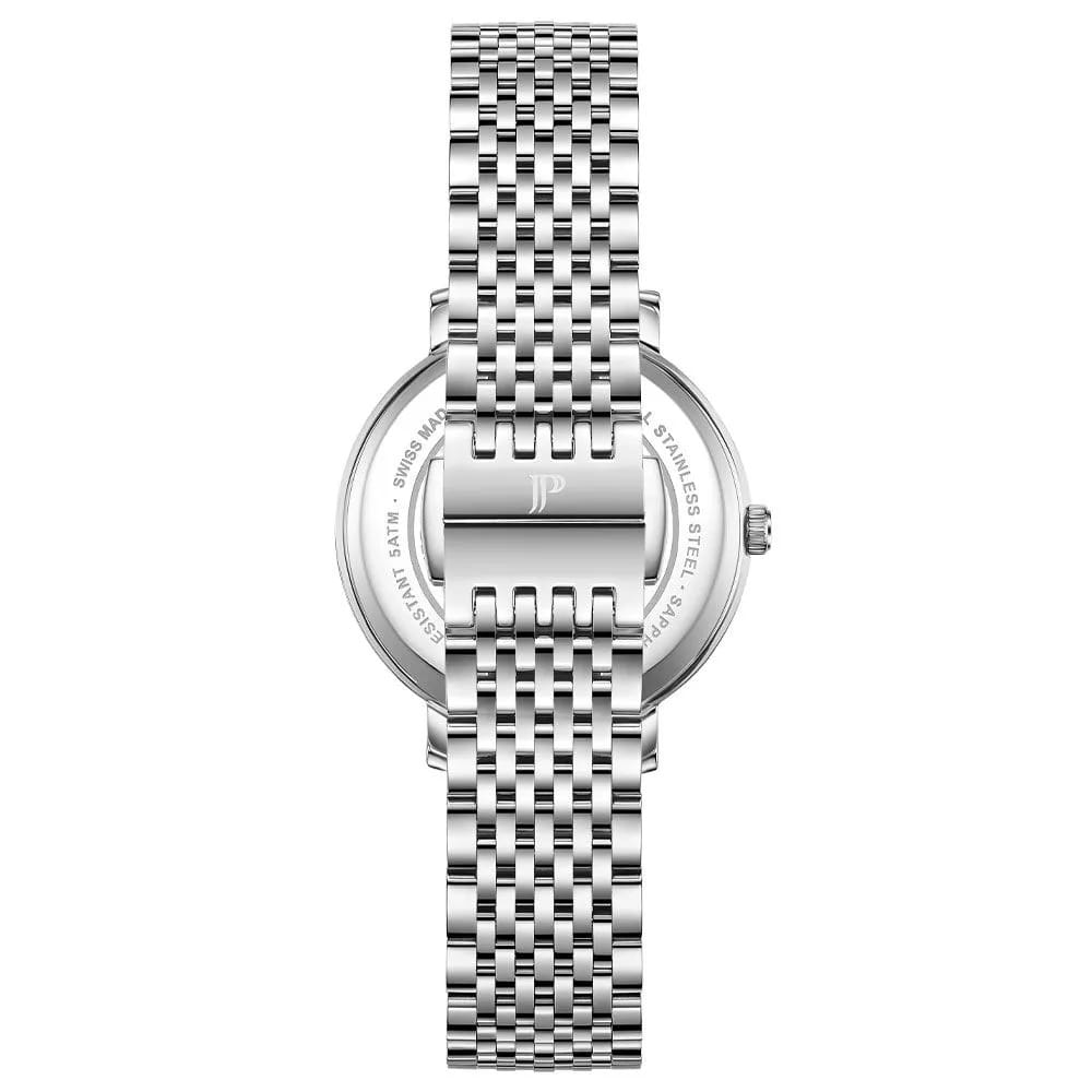 Швейцарские женские часы Jacques Philippe Vitalicus JPQLS751386 кварцевый механизм с высокой точностью. Прочное сапфировое стеклоСапфировое стеклоПрочный и надёжный материал из кристалла сапфира синтетического происхождения, характеризующийся особой твёрдостью и устойчивостью к царапинам и повреждениям. устойчивое к царапинам и механическим повреждениям. Циферблат серебристого цвета украшен кристаллами в виде меток и классическими стрелками, что гармонично дополняет общий дизайн модели. Элегантный корпус изготовлен из нержавеющей стали, диаметром 31 мм, что делает их устойчивыми к внешним воздействиям и придает благородный вид. Стальной браслет на застёжке-бабочке с кнопкамиЗастёжка "бабочка"Такой вид застёжки дополняется предохранителями, помогающими избежать случайного раскрытия браслета. Обладают изящным исполнением. обеспечивает комфортное и безопасное ношение. Класс водозащиты: 50 метров позволит защитить корпус от случайных брызг или капель дождя. Эти часы станут идеальным выбором для женщин, ценящих стиль, качество и функциональность и элегантность.