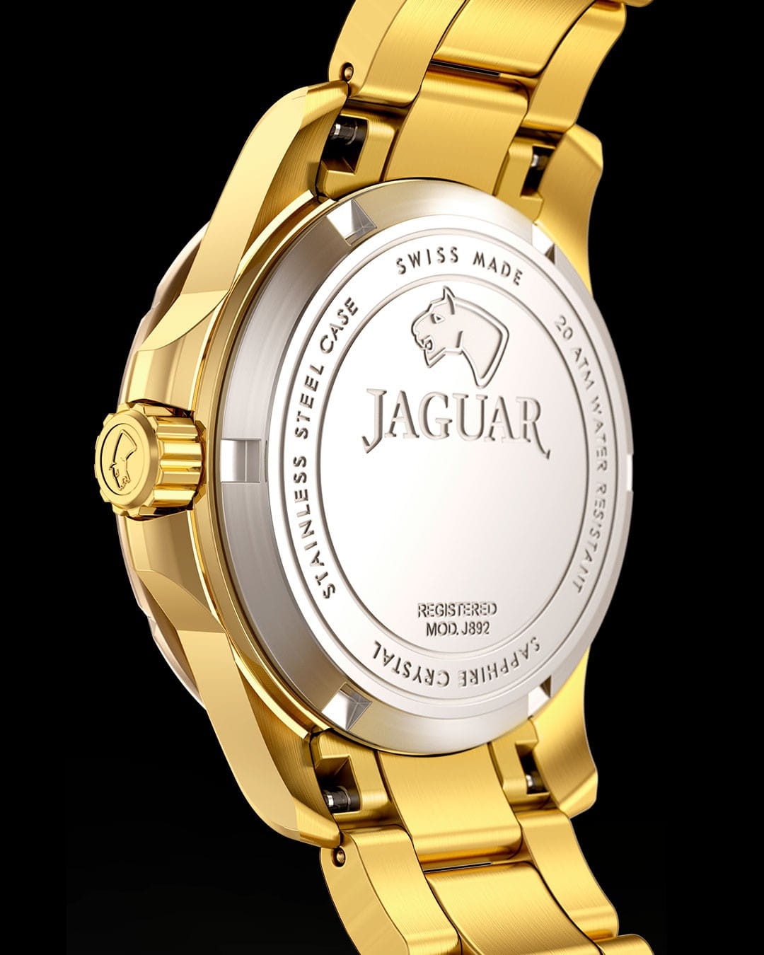 Женские швейцарские часы Jaguar Woman J895/4. Кварцевый швейцарский калибр Ronda 705. Сапфировое стеклоСапфировое стеклоПрочный и надёжный материал из кристалла сапфира синтетического происхождения, характеризующийся особой твёрдостью и устойчивостью к царапинам и повреждениям. устойчивое к мелким механическим повреждениям. Корпус и браслет часов изготовлены из нержавеющей стали с PVD-покрытиемPVDУльтратонкое покрытие наносится в технике вакуумного напыления, сочетает в себе нитрид титана особой прочности со слоем золота или оксида хрома. Несёт в себе декоративную или защитную функцию.. Стрелки с люминесцентным покрытиемЛюминесцентное покрытиеПозволяет считывать показания времени в темноте. Производители наносят на стрелки, часовые индексы, безель или поверхность циферблата светонакопительный состав, дающий холодное свечение.. Окошко даты находится в положении 3 часа. Класс водозащиты: 200 метров, позволит плавать, нырять и заниматься другими водными видами спорта. Стальной браслет с частичным PVD-покрытиемPVDУльтратонкое покрытие наносится в технике вакуумного напыления, сочетает в себе нитрид титана особой прочности со слоем золота или оксида хрома. Несёт в себе декоративную или защитную функцию. на раскладной застёжкеРаскладная застёжкаТакой тип застёжки используется только на браслетах из металла. Она никогда не раскрывается полностью, происходит разделение на 2 и более частей. Раскладывающая застёжка снизит вероятность потери часов к минимуму.. Циферблат украшен кристаллами в роли часовых индексов. БезельБезельВнешний ободок, закрепляющий стекло. В спортивных часах так называется поворотное кольцо с делениями на циферблате, выполняет роль таймера – замеряет отрезки времени на шкале. Неподвижный безель – элемент декора. Однонаправленно вращающийся безель на дайверских часах позволяет фиксировать моменты погружения и выныривания на поверхность. с PVD-покрытиемPVDУльтратонкое покрытие наносится в технике вакуумного напыления, сочетает в себе нитрид титана особой прочности со слоем золота или оксида хрома. Несёт в себе декоративную или защитную функцию. инкрустирован кристаллами.