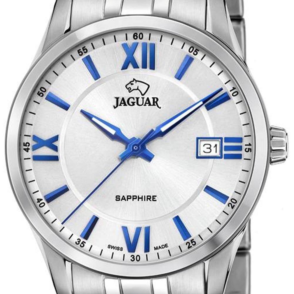 Мужские швейцарские часы Jaguar Acamar J964/1. Кварцевый швейцарский калибр Ronda 6003D. Сапфировое стеклоСапфировое стеклоПрочный и надёжный материал из кристалла сапфира синтетического происхождения, характеризующийся особой твёрдостью и устойчивостью к царапинам и повреждениям. устойчивое к мелким механическим повреждениям. Корпус и браслет часов изготовлены из нержавеющей стали. Окошко даты находится в положении 3 часа. Стрелки с люминесцентным покрытиемЛюминесцентное покрытиеПозволяет считывать показания времени в темноте. Производители наносят на стрелки, часовые индексы, безель или поверхность циферблата светонакопительный состав, дающий холодное свечение.. Класс водозащиты: 100 метров, позволит плавать, нырять и заниматься другими водными видами спорта. Стальной браслет на раскладной застёжкеРаскладная застёжкаТакой тип застёжки используется только на браслетах из металла. Она никогда не раскрывается полностью, происходит разделение на 2 и более частей. Раскладывающая застёжка снизит вероятность потери часов к минимуму..