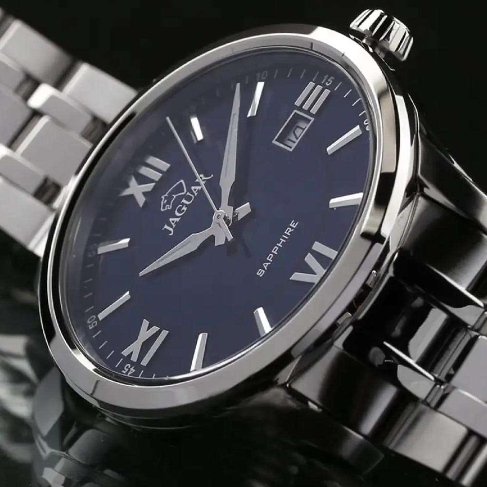 Мужские швейцарские часы Jaguar Acamar J964/2. Кварцевый швейцарский калибр Ronda 6003D. Сапфировое стеклоСапфировое стеклоПрочный и надёжный материал из кристалла сапфира синтетического происхождения, характеризующийся особой твёрдостью и устойчивостью к царапинам и повреждениям. устойчивое к мелким механическим повреждениям. Корпус и браслет часов изготовлены из нержавеющей стали. Окошко даты находится в положении 3 часа. Стрелки с люминесцентным покрытиемЛюминесцентное покрытиеПозволяет считывать показания времени в темноте. Производители наносят на стрелки, часовые индексы, безель или поверхность циферблата светонакопительный состав, дающий холодное свечение.. Класс водозащиты: 100 метров, позволит плавать, нырять и заниматься другими водными видами спорта. Стальной браслет на раскладной застёжкеРаскладная застёжкаТакой тип застёжки используется только на браслетах из металла. Она никогда не раскрывается полностью, происходит разделение на 2 и более частей. Раскладывающая застёжка снизит вероятность потери часов к минимуму..