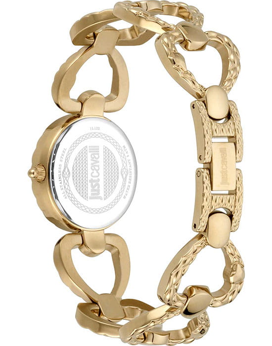 Женские итальянские часы с кристаллами Just Cavalli JC1L132M0025, кварцевый механизм с высокой точностью. Класс водозащиты: 50 метров, позволит защитить корпус от случайных брызг или капель дождя. Корпус часов изготовлен из стали, золотистого цвета.