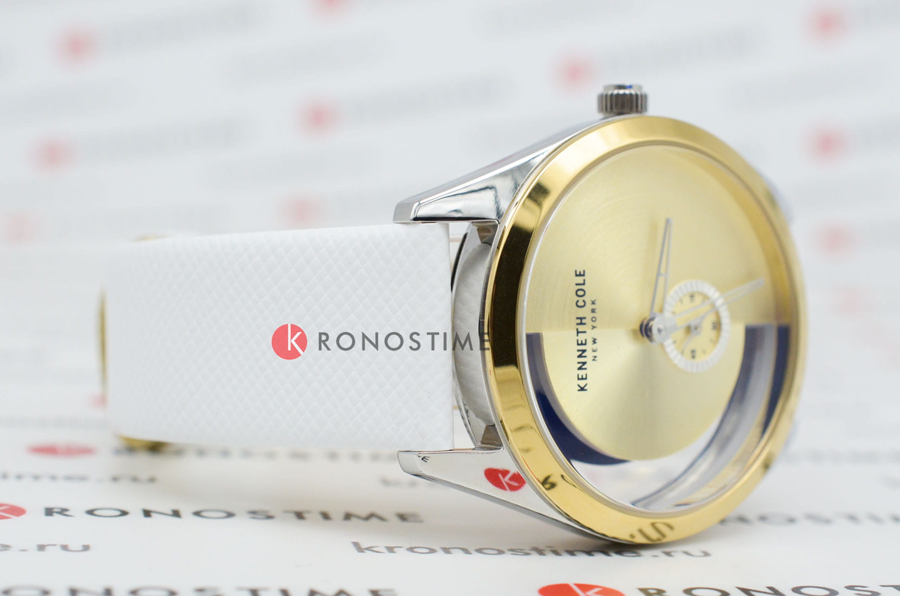 Женские кварцевые часы Kenneth Cole KCWLA2223108 — это стильный и необычный аксессуар с современным дизайном. Корпус диаметром 36 мм выполнен из нержавеющей стали. Безель с IP-покрытиемIP-покрытиеМетод ионного напыления. Демонстрирует повышенную устойчивость к истиранию, окислению и химическим веществам. Под воздействием высокого давления и температуры около 1500°C молекулы металла надёжно соединяются с частицами корпуса часов.. Циферблат золотистого цвета дополнен малой секундной стрелкой, что придаёт классическому дизайну изысканности. Циферблат защищён минеральным стекломМинеральное стеклоМинеральное стекло представляет собой искусственно выращенный минерал кварца. Такое стекло отличается особой устойчивостью к повреждениям и царапинам. Уступает по некоторым качествам сапфировому стеклу.. Особенностью модели является прозрачный корпус, добавляющий оригинальности и визуальной лёгкости. Часы оснащены ремешком из натуральной кожи белого цвета с классической пряжкой. Водонепроницаемость 30 м позволяет использовать часы в повседневных условиях, защищая от случайных брызг и капель дождя. Уникальный внешний вид и внимание к деталям делают эти часы идеальным выбором для тех, кто ценит индивидуальность.