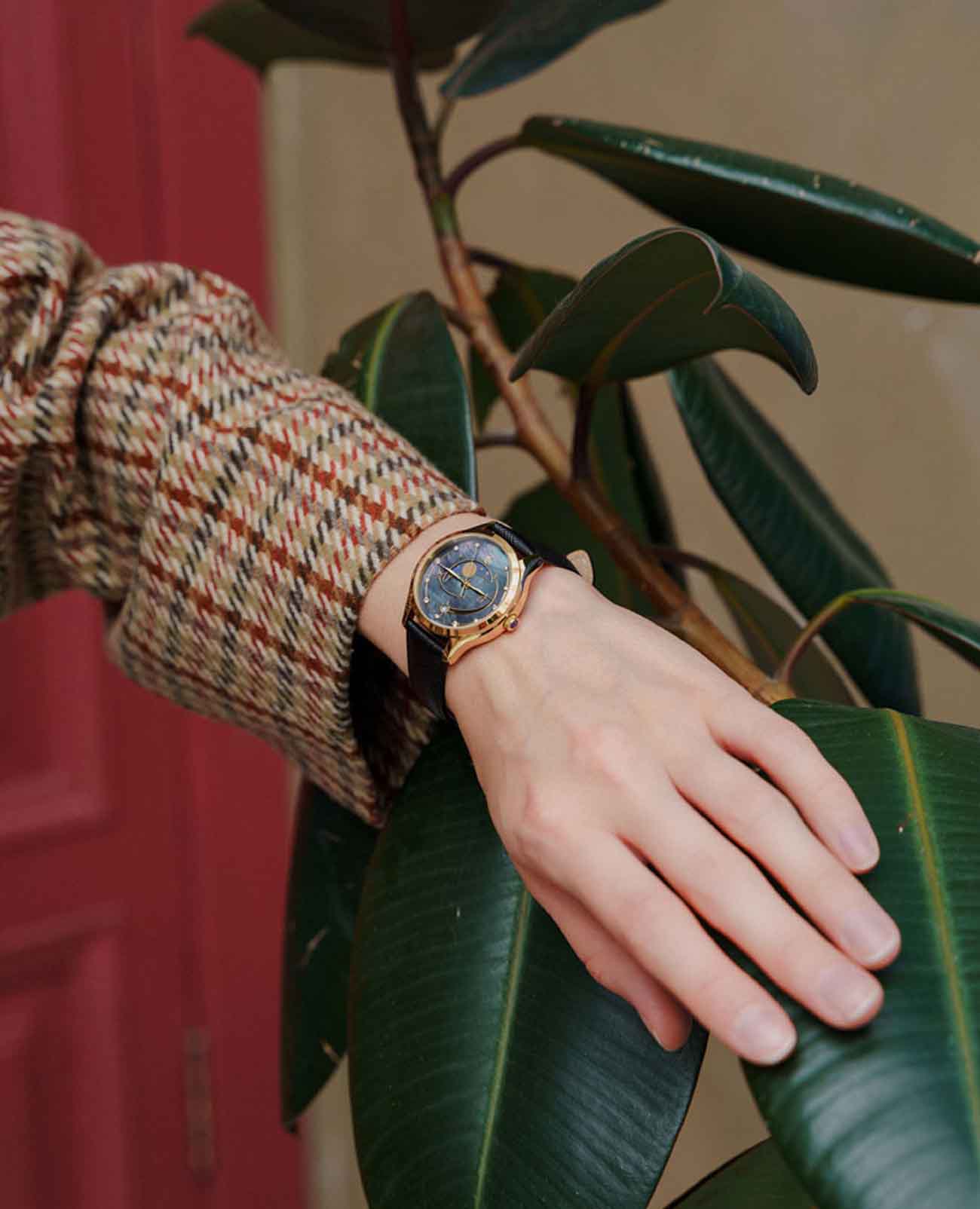 Женские швейцарские часы L'Duchen Perseides D 837.21.41, кварцевый механизм с высокой точностью. Сапфировое стеклоСапфировое стеклоПрочный и надёжный материал из кристалла сапфира синтетического происхождения, характеризующийся особой твёрдостью и устойчивостью к царапинам и повреждениям. устойчивое к появлению царапин, обладающее высокой прозрачностью. Корпус часов выполнен из нержавеющей стали с PVD-покрытиемPVDУльтратонкое покрытие наносится в технике вакуумного напыления, сочетает в себе нитрид титана особой прочности со слоем золота или оксида хрома. Несёт в себе декоративную или защитную функцию.. Циферблат украшен фианитами. Класс водозащиты: 50 метров, позволит защитить корпус от случайных брызг или капель дождя. Кожаный ремешок на застёжке «бабочка» с кнопкамиЗастёжка "бабочка"Такой вид застёжки дополняется предохранителями, помогающими избежать случайного раскрытия браслета. Обладают изящным исполнением. .