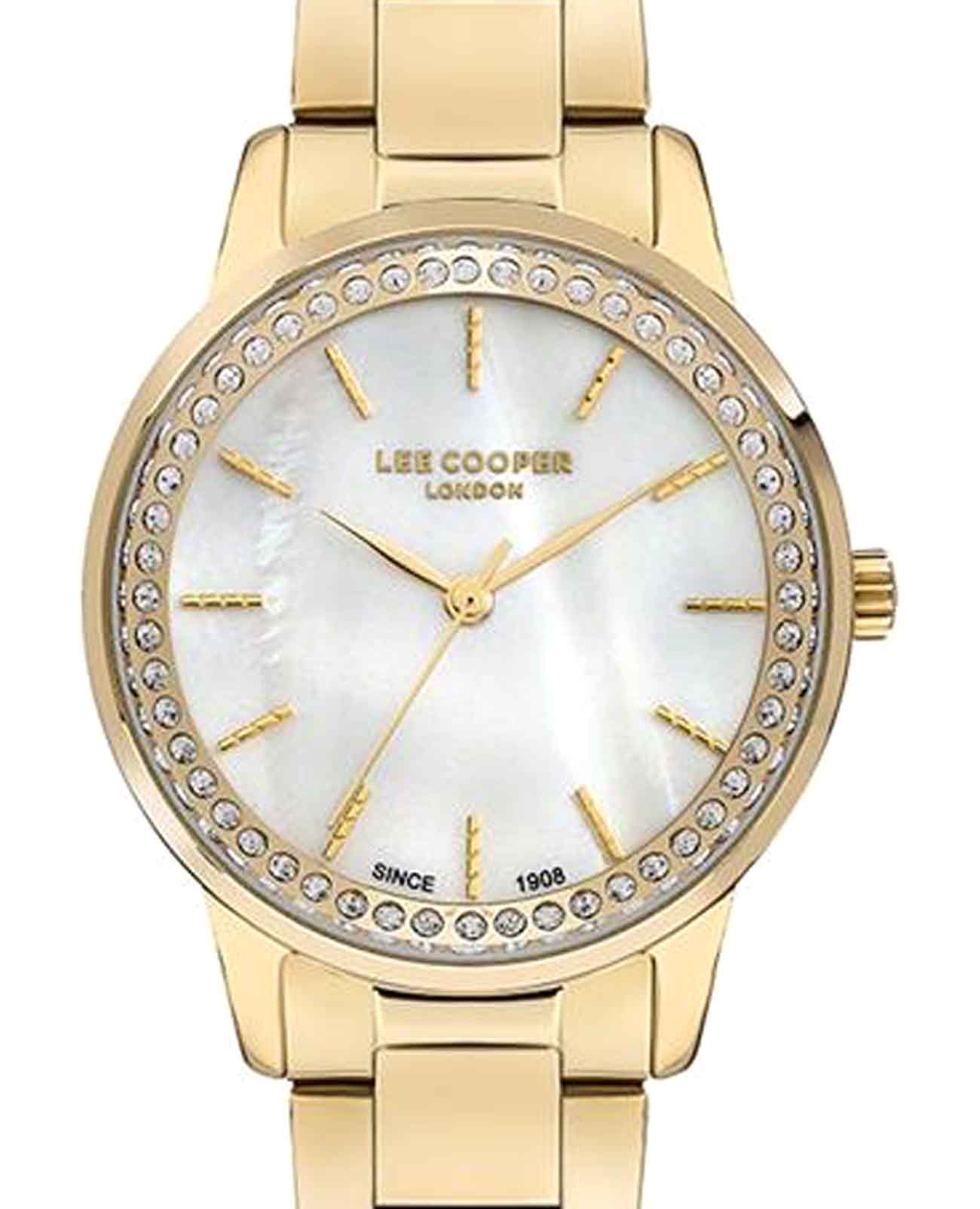 Женские часы Lee Cooper LC07229.120 — это стильное сочетание элегантности и современного дизайна. Круглый корпус диаметром 34 мм выполнен из суперметалла в золотом цвете с IP-покрытиемIP-покрытиеМетод ионного напыления. Демонстрирует повышенную устойчивость к истиранию, окислению и химическим веществам. Под воздействием высокого давления и температуры около 1500°C молекулы металла надёжно соединяются с частицами корпуса часов., а безельБезельВнешний ободок, закрепляющий стекло. В спортивных часах так называется поворотное кольцо с делениями на циферблате, выполняет роль таймера – замеряет отрезки времени на шкале. Неподвижный безель – элемент декора. Однонаправленно вращающийся безель на дайверских часах позволяет фиксировать моменты погружения и выныривания на поверхность. украшен кристаллами, придающими модели особый блеск. Перламутровый циферблат защищен минеральным стекломМинеральное стеклоМинеральное стекло представляет собой искусственно выращенный минерал кварца. Такое стекло отличается особой устойчивостью к повреждениям и царапинам. Уступает по некоторым качествам сапфировому стеклу., обеспечивающим устойчивость к царапинам. Часы оснащены надежным кварцевым механизмом, а металлический браслет с раскладной застёжкойРаскладная застёжкаТакой тип застёжки используется только на браслетах из металла. Она никогда не раскрывается полностью, происходит разделение на 2 и более частей. Раскладывающая застёжка снизит вероятность потери часов к минимуму. гарантирует комфортную посадку на запястье. Водозащита 30 метров защищает модель от случайных брызг и дождя. Lee Cooper — отличный выбор для тех, кто ценит утонченность и качество.