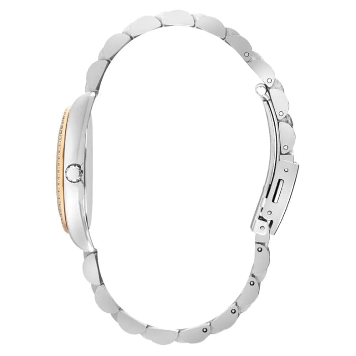 Женские наручные часы Lee Cooper LC07478.540 — это элегантная модель с утончённым дизайном. Корпус диаметром 34 мм выполнен из суперметалла, что придаёт часам изысканный вид. Перламутровый циферблат украшен изящными метками и стрелками, обеспечивая удобное считывание времени. Циферблат защищён минеральным стекломМинеральное стеклоМинеральное стекло представляет собой искусственно выращенный минерал кварца. Такое стекло отличается особой устойчивостью к повреждениям и царапинам. Уступает по некоторым качествам сапфировому стеклу., устойчивым к царапинам. Часы работают на кварцевом механизме, обеспечивая точность хода. Браслет из нержавеющей стали с раскладной застёжкойРаскладная застёжкаТакой тип застёжки используется только на браслетах из металла. Она никогда не раскрывается полностью, происходит разделение на 2 и более частей. Раскладывающая застёжка снизит вероятность потери часов к минимуму. гарантирует комфортное ношение и надёжную фиксацию на запястье. Водозащита WR30 защищает часы от случайных брызг и дождя, делая их подходящими для повседневного использования.